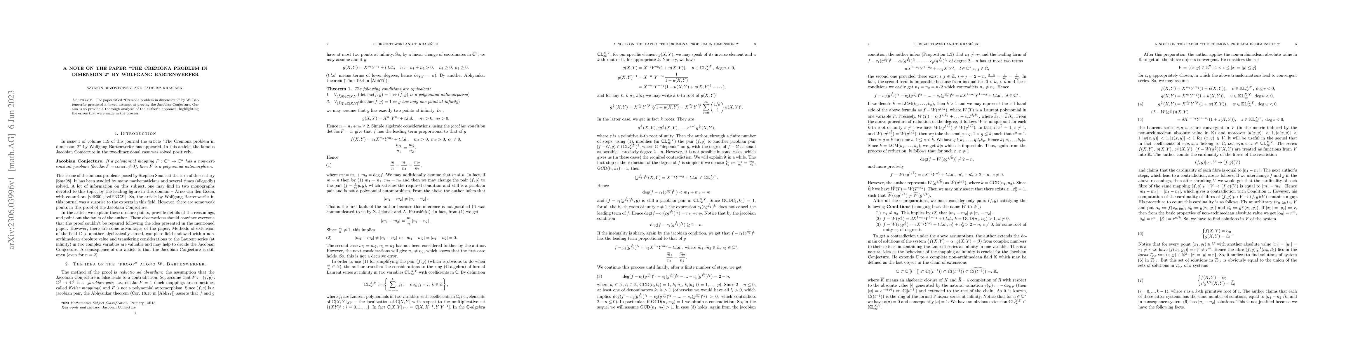 Summary: This paper critiques W. Bartenwerfer's attempt to prove the Jacobian Conjecture in dimension 2, identifying and analyzing the methodological errors in the original work. The goal is to clarify the issues and improve understanding of the Cremona problem.