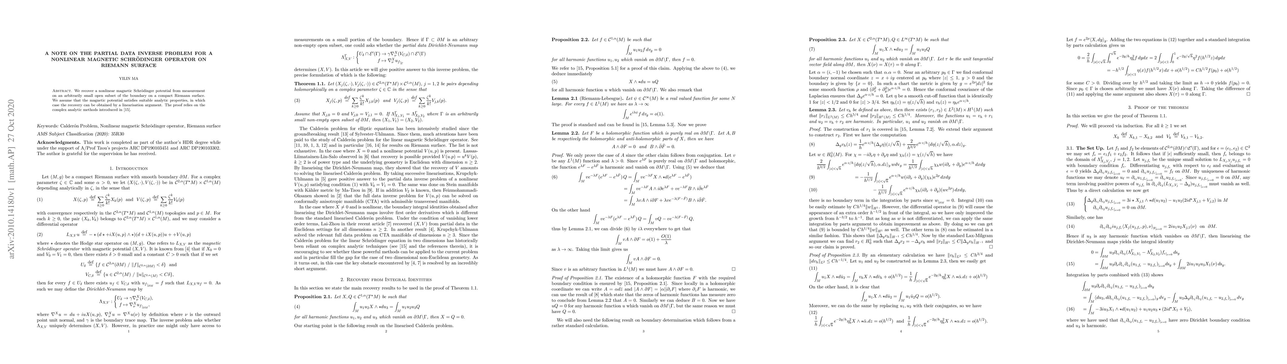 We recover a nonlinear magnetic Schr\"odinger potential from measurement on an arbitrarily small open subset of the boundary on a compact Riemann surface. We assume that the magnetic potential satisfies suitable analytic properties, in which case the recovery can be obtained by a linearisation argument. The proof relies on the complex analytic methods introduced in [15].