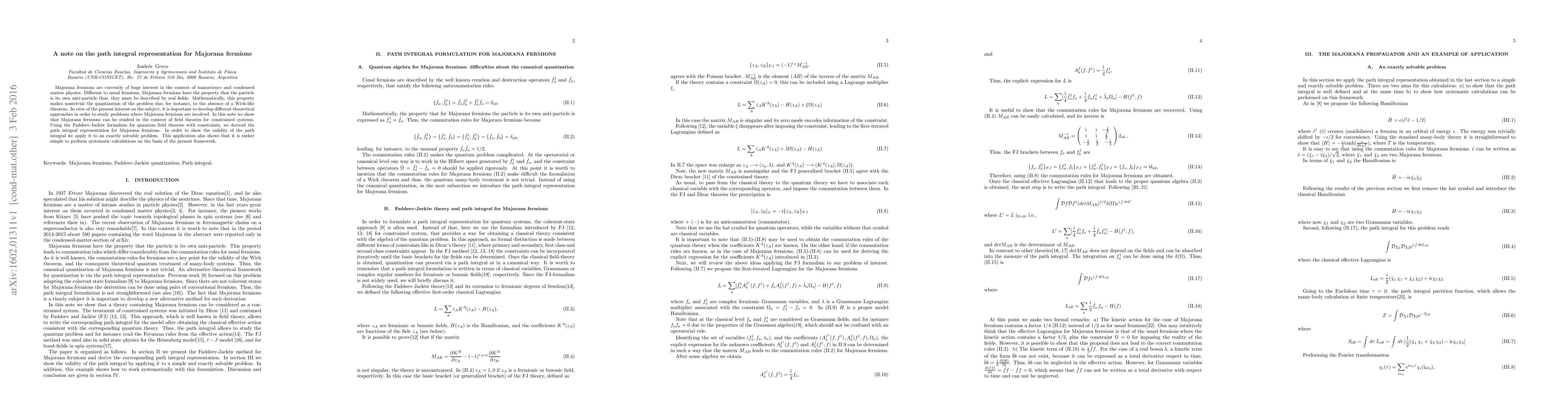 Researchers developed a path integral representation for Majorana fermions using field theories with constraints, providing a new theoretical approach to studying these particles in condensed matter physics. This framework allows for systematic calculations and shows the validity of the path integral method for exactly solvable problems.