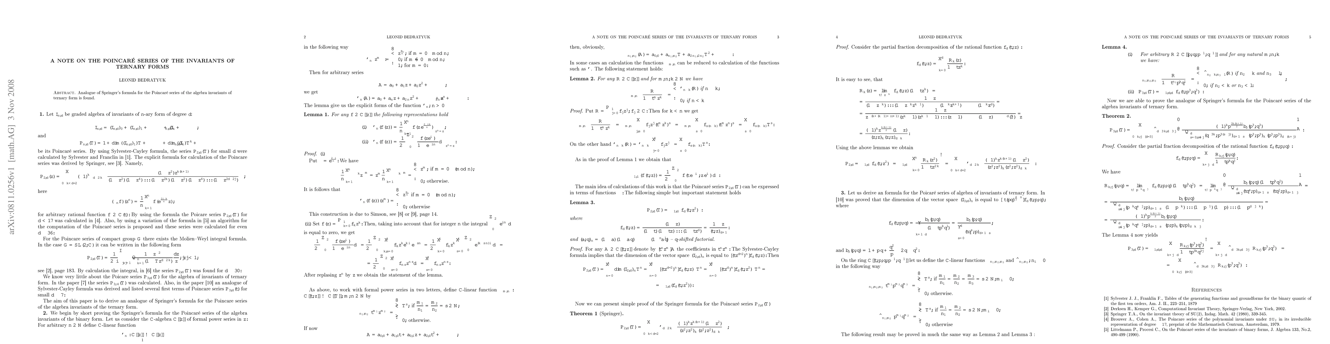Analogue of Springer's formula for the Poincar\'e series of the algebra invariants of ternary form is found.