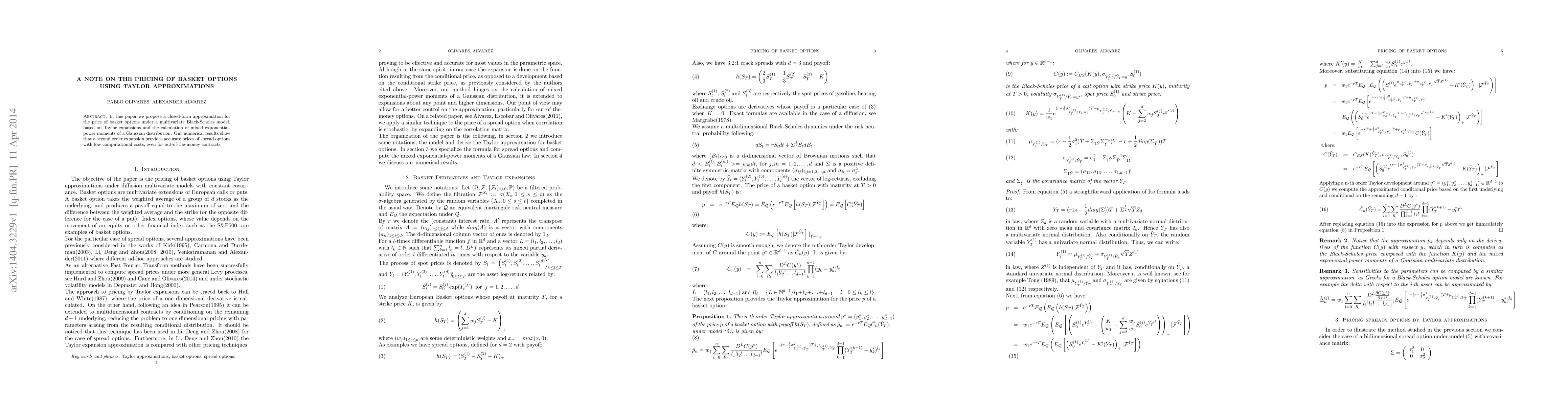 In this paper we propose a closed-form approximation for the price of basket options under a multivariate Black-Scholes model, based on Taylor expansions and the calculation of mixed exponential-power moments of a Gaussian distribution. Our numerical results show that a second order expansion provides accurate prices of spread options with low computational costs, even for out-of-the-money contracts.