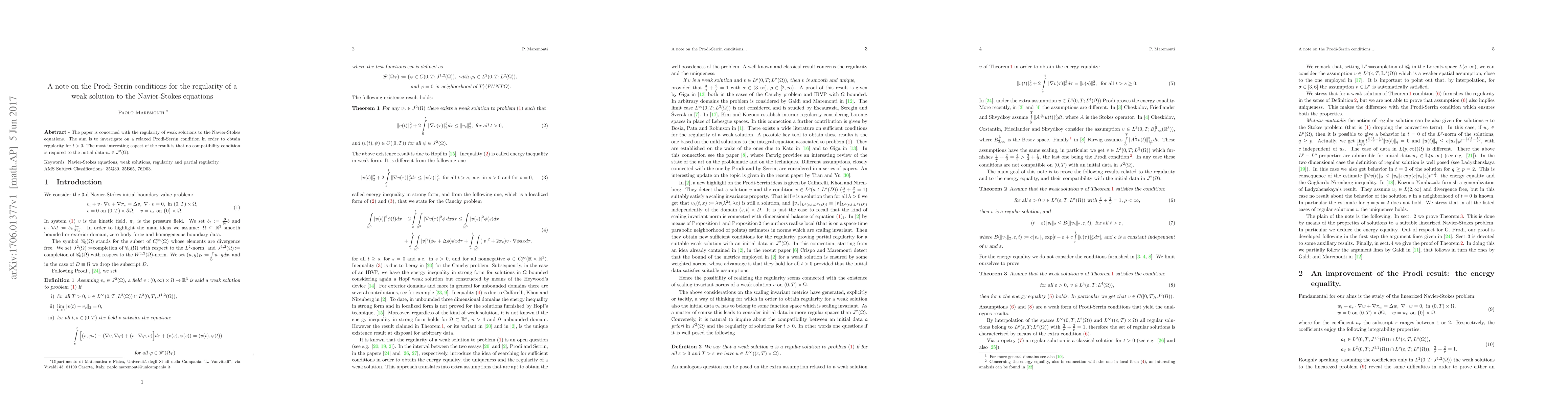 The paper is concerned with the regularity of weak solutions to the Navier-Stokes equations. The aim is to investigate on a relaxed Prodi-Serrin condition in order to obtain regularity for t > 0. The most interesting aspect of the result is that no compatibility condition is required to the initial data $v_0\in J^2(\OO) J2({\Omega})$.