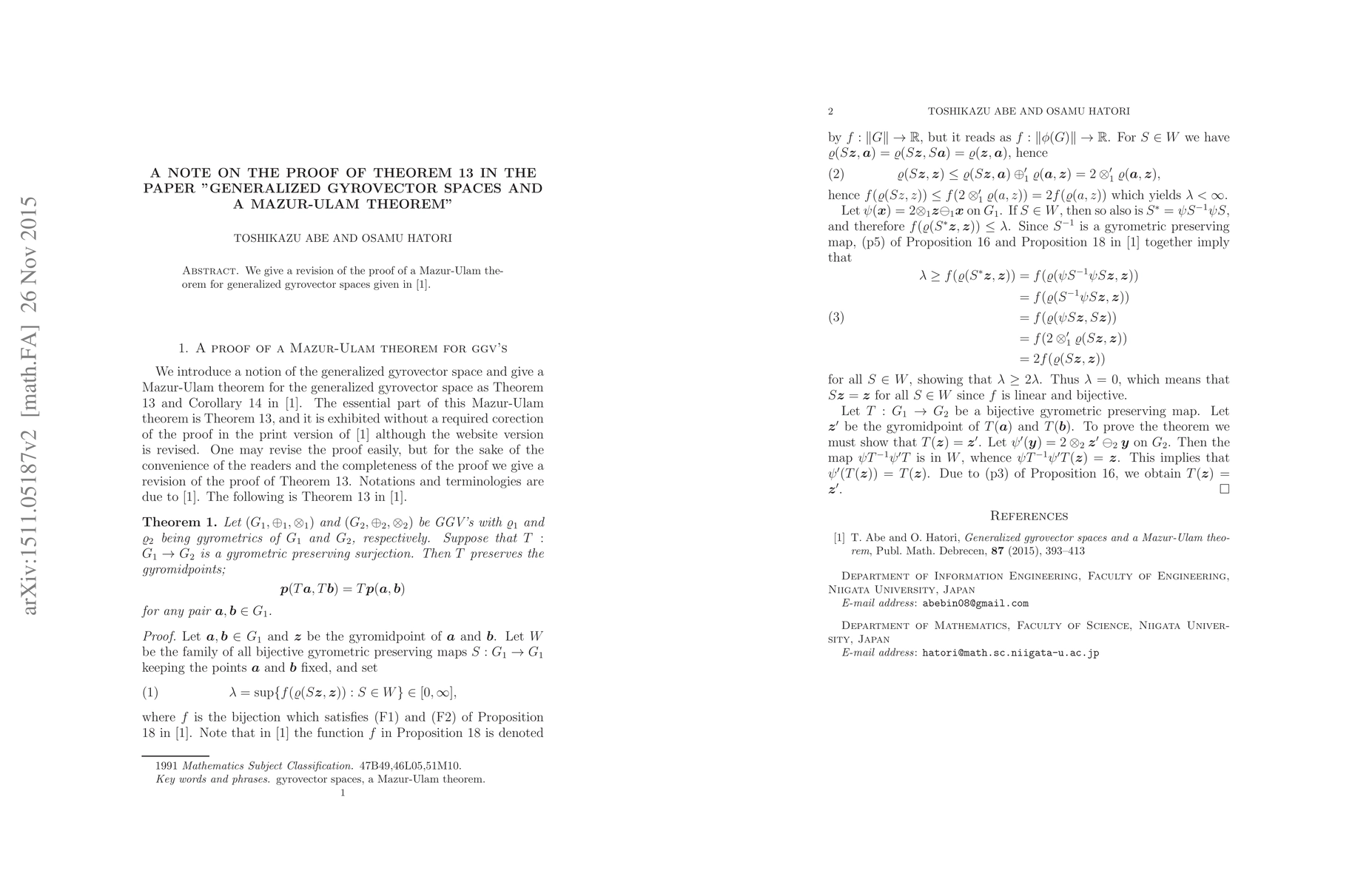 We give a revision of the proof of a Mazur-Ulam theorem for generalized gyrovector spaces given in the paper "Generalized gyrovector spaces and a Mazur-Ulam theorem" published in Publ. Math. Debrecen, 87 (2015), 393--413.