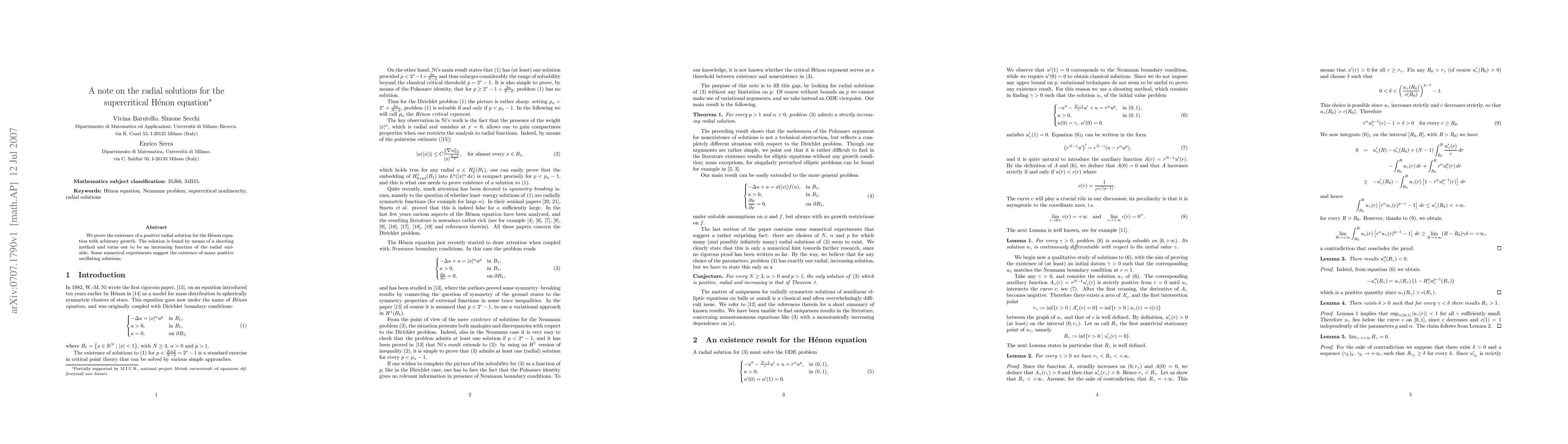 We prove the existence of a positive radial solution for the H\'enon equation with arbitrary growth. The solution is found by means of a shooting method and turns out to be an increasing function of the radial variable. Some numerical experiments suggest the existence of many positive oscillating solutions.