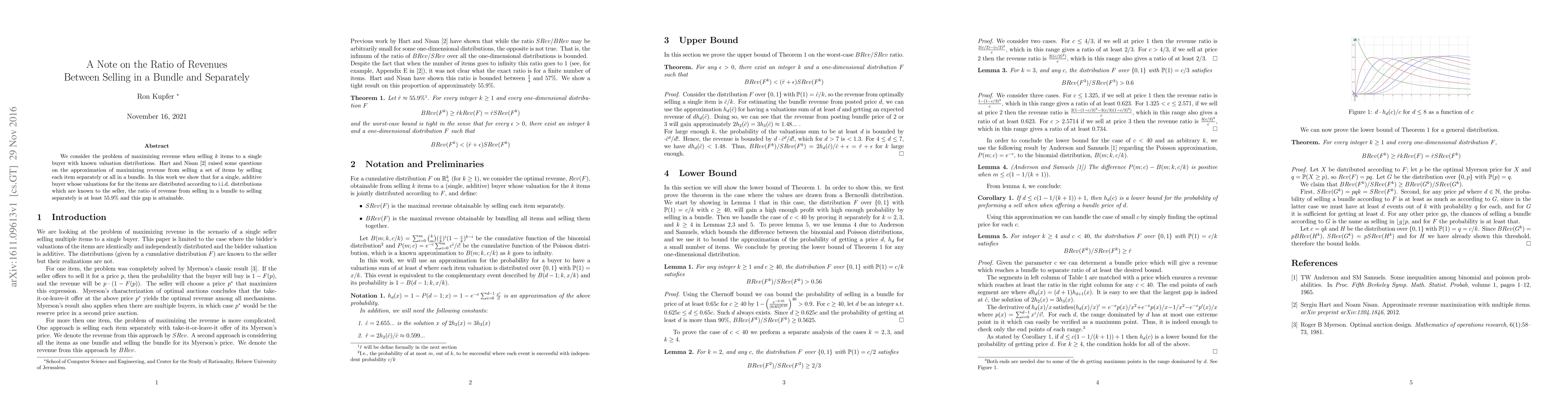 We consider the problem of maximizing revenue when selling k items to a single buyer with known valuation distributions. We show that for a single, additive buyer whose valuations for for the items are distributed according to i.i.d. distributions which are known to the seller, the ratio of revenue from selling in a bundle to selling separately is at least 55.9% and this gap is attainable.
