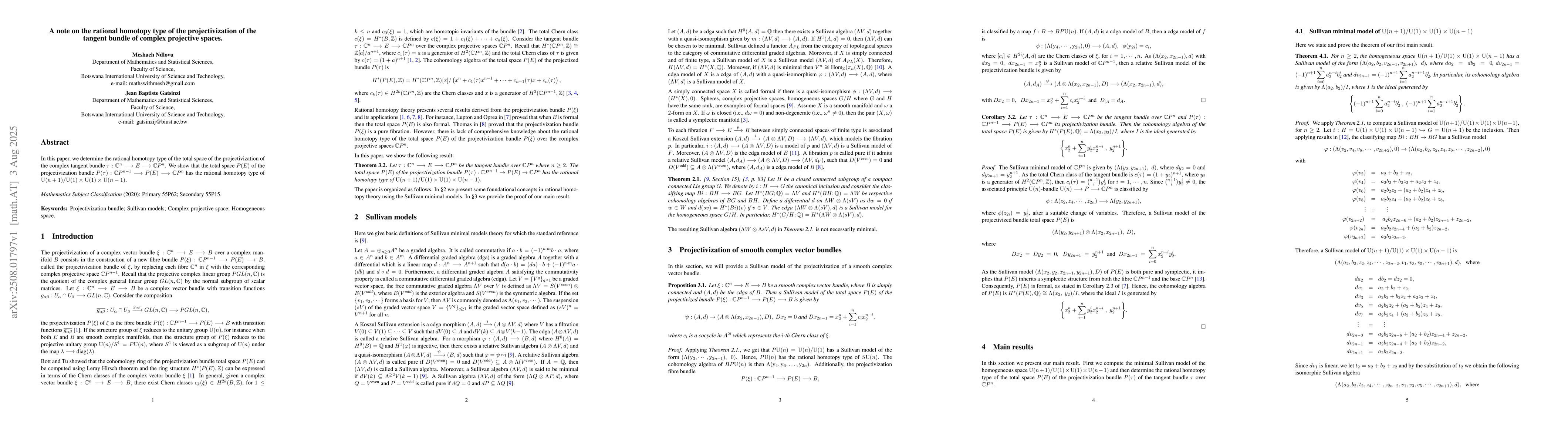 In this paper, we determine the rational homotopy type of the total space of the projectivization of the complex tangent bundle $\tau : \mathbb{C}^n \longrightarrow E \longrightarrow \mathbb{C}P^{n}$. We show that the total space $P(E)$ of the projectivization bundle $P(\tau): \mathbb{C}P^{n-1} \longrightarrow P(E) \longrightarrow \mathbb{C}P^{n}$ has the rational homotopy type of $\mathrm{U}(n+1)/\mathrm{U}(1)\times \mathrm{U}(1)\times \mathrm{U}(n-1)$.