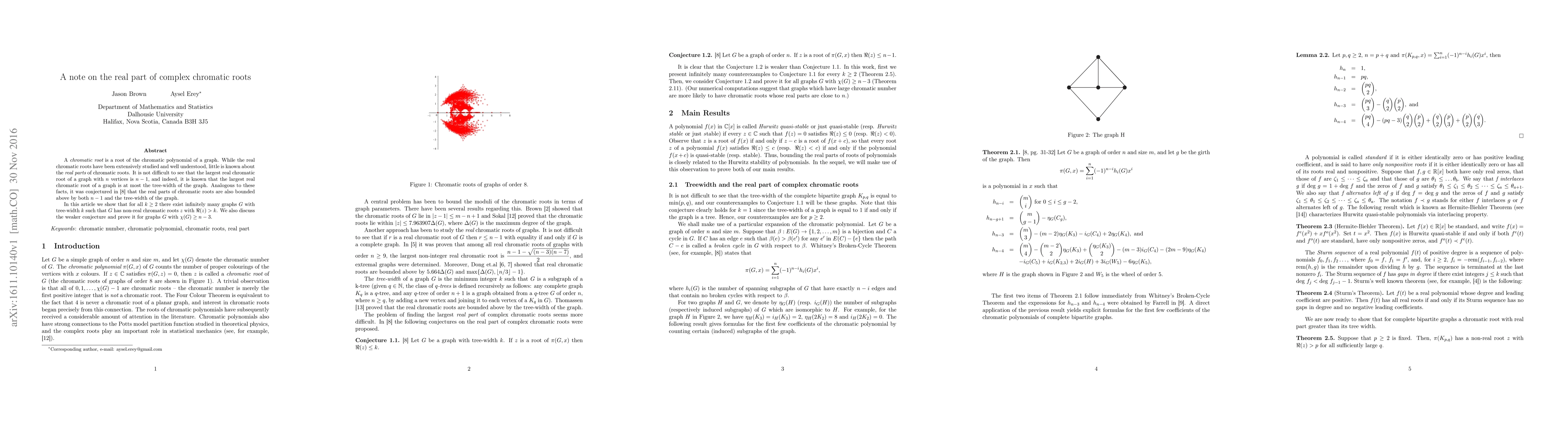 This paper explores the real parts of complex chromatic roots of graphs, demonstrating that there exist infinitely many graphs with tree-width $k\geq 2$ having chromatic roots with real parts greater than $k$. It also proves a weaker conjecture for graphs with chromatic number at least $n-3$.