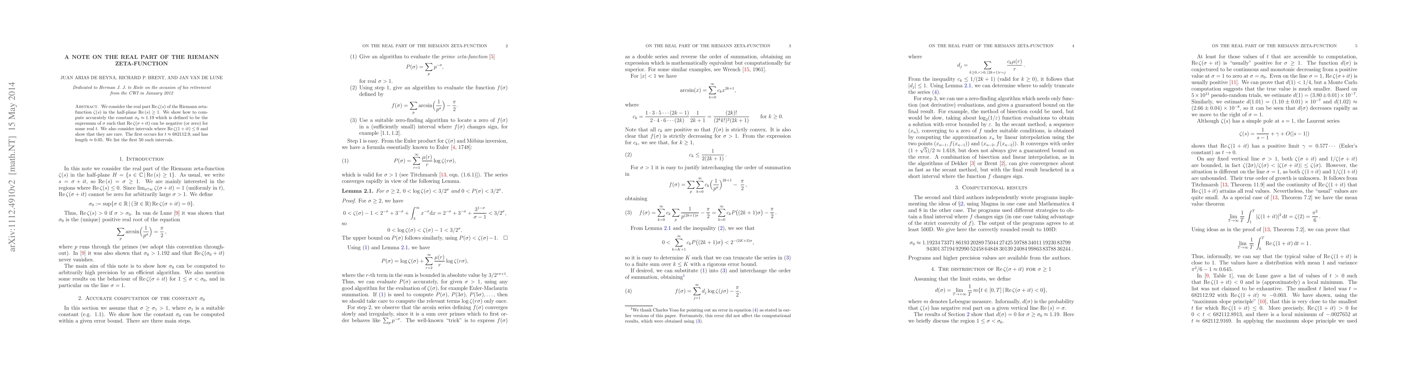 We consider the real part $\Re(\zeta(s))$ of the Riemann zeta-function $\zeta(s)$ in the half-plane $\Re(s) \ge 1$. We show how to compute accurately the constant $\sigma_0 = 1.19\ldots$ which is defined to be the supremum of $\sigma$ such that $\Re(\zeta(\sigma+it))$ can be negative (or zero) for some real $t$. We also consider intervals where $\Re(\zeta(1+it)) \le 0$ and show that they are rare. The first occurs for $t$ approximately 682112.9, and has length about 0.05. We list the first fifty such intervals.