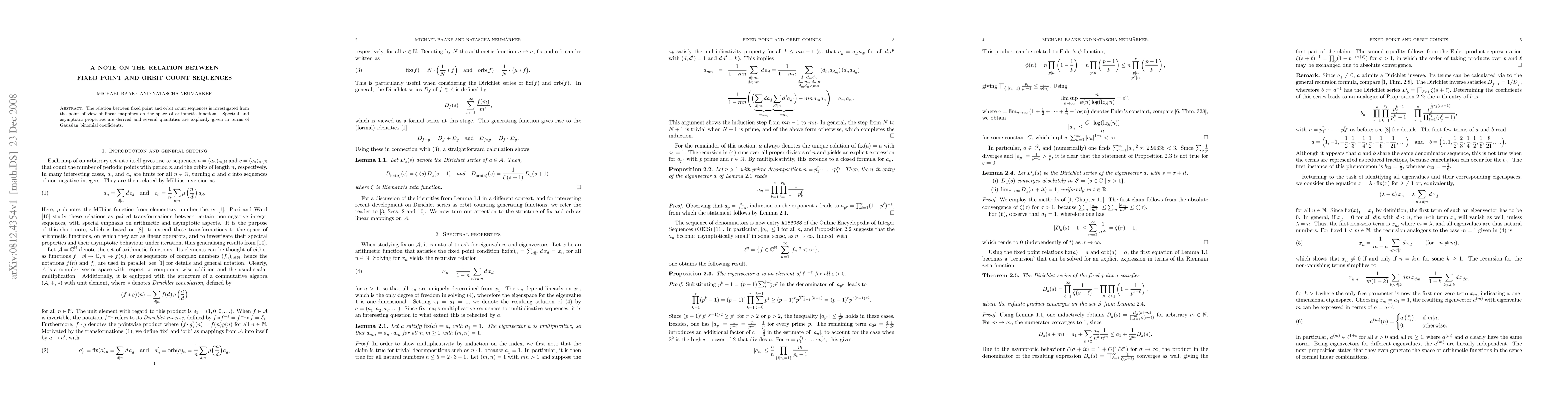 The relation between fixed point and orbit count sequences is investigated from the point of view of linear mappings on the space of arithmetic functions. Spectral and asymptotic properties are derived and several quantities are explicitly given in terms of Gaussian binomial coefficients.