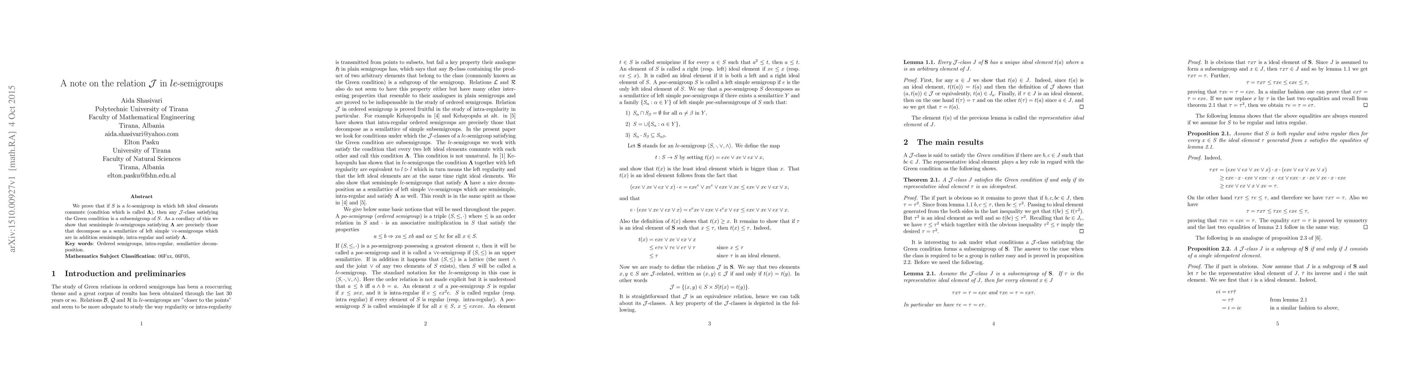 We prove that if $S$ is a $le$-semigroup in which left ideal elements commute (condition which is called $\mathbf{\Lambda}$), then any $\mathcal{J}$-class satisfying the Green condition is a subsemigroup of $S$. As a corollary of this we show that semisimple $le$-semigroups satisfying $\mathbf{\Lambda}$ are precisely those that decompose as a semilattice of left simple $\vee e$-semigroups which are in addition semisimple, intra-regular and satisfy $\mathbf{\Lambda}$.
