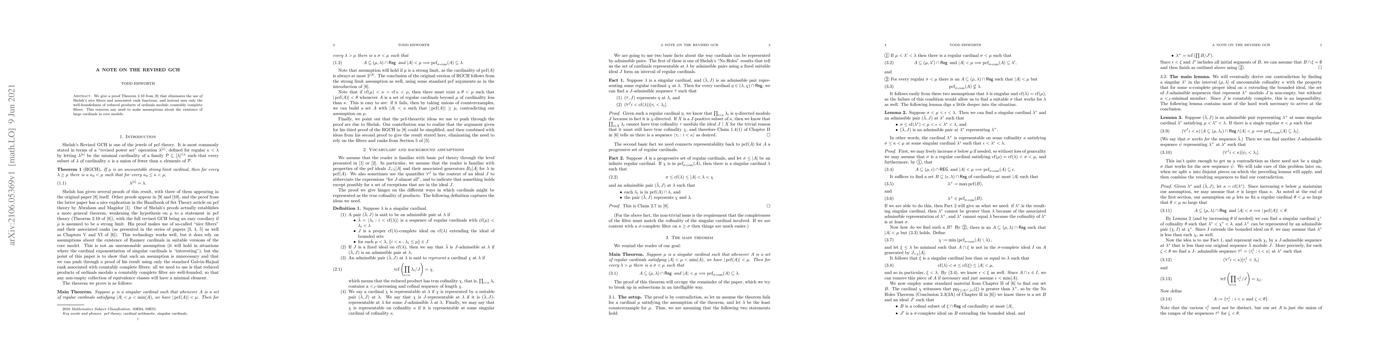 We give a proof of Theorem 2.10 from [8] that eliminates the use of Shelah's nice filters and associated rank functions, and instead uses only the well-foundedness of reduced products of ordinals modulo countably complete filters. This removes any need to make assumptions about the existence of large cardinals in core models.