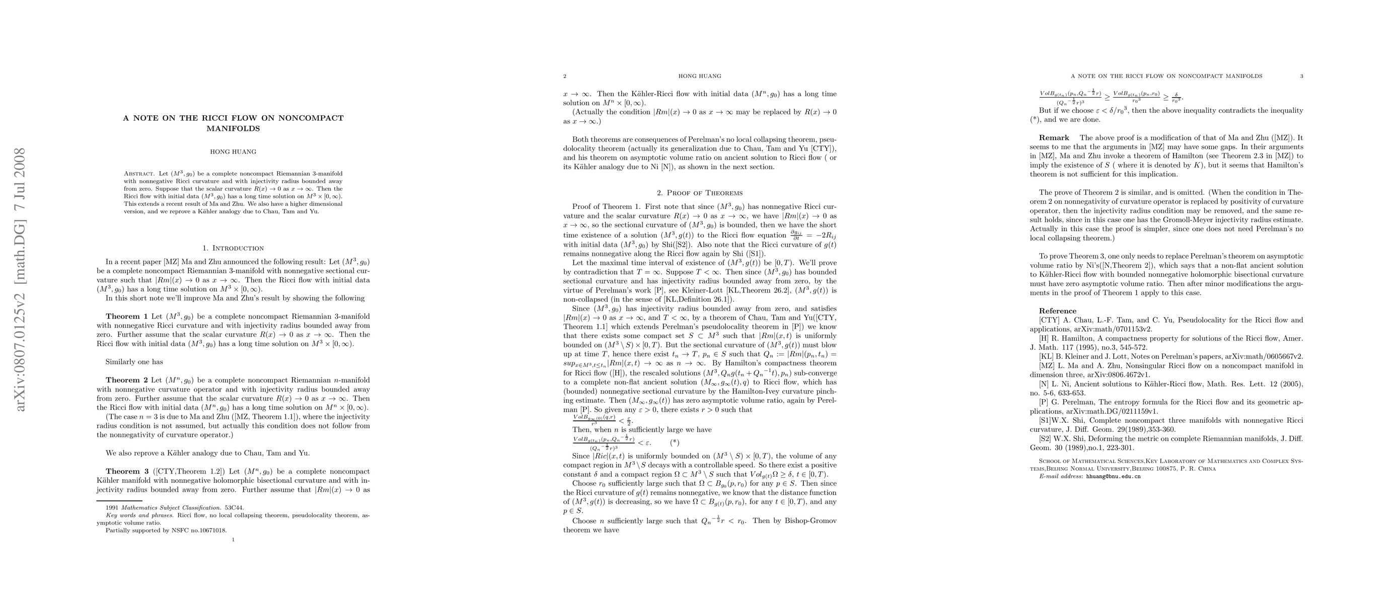 The research uses a brief description of the Ricci flow on noncompact manifolds