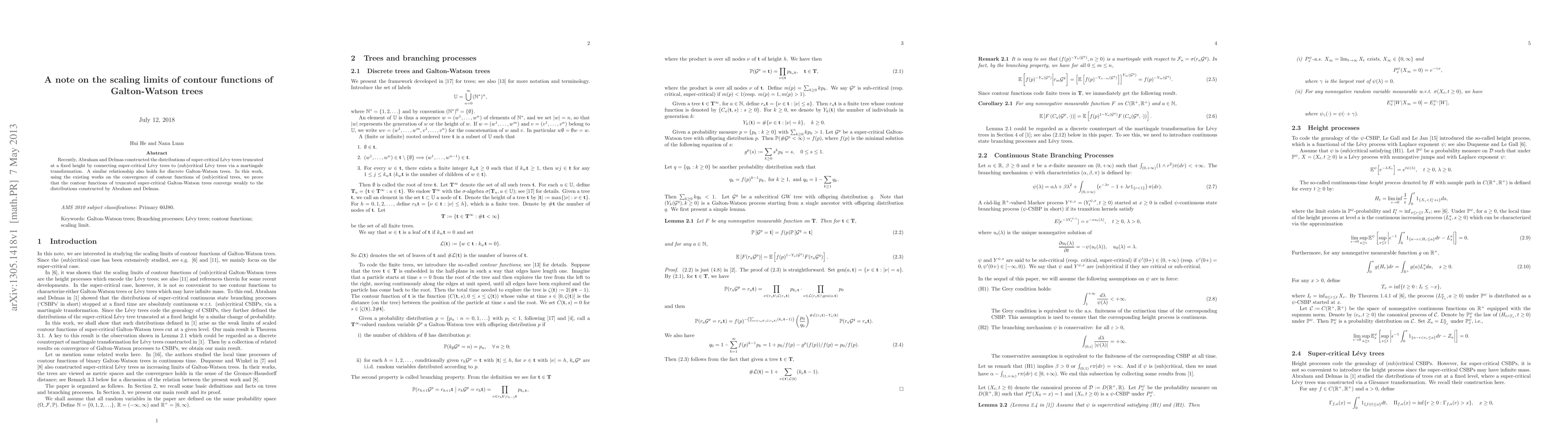 This paper demonstrates that the contour functions of truncated super-critical Galton-Watson trees converge weakly to distributions previously constructed by Abraham and Delmas, extending their findings from Lévy trees to Galton-Watson trees.