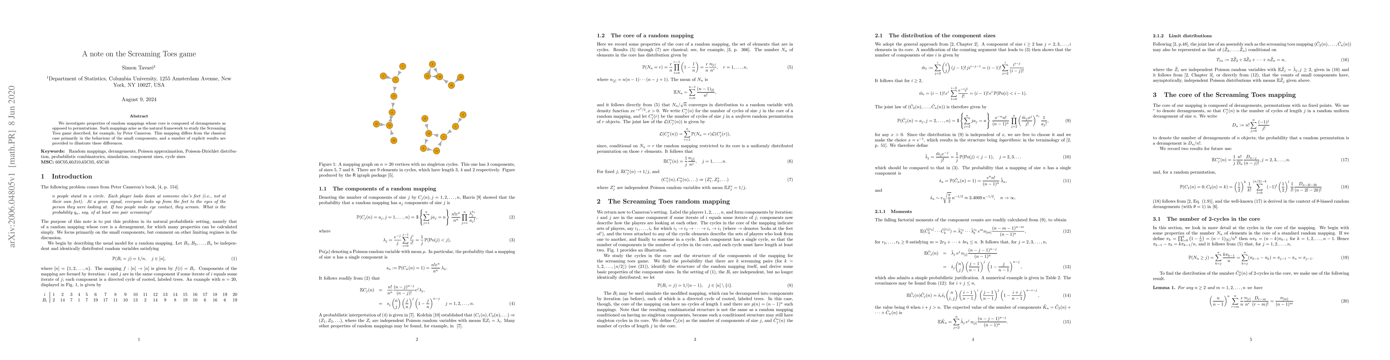 We investigate properties of random mappings whose core is composed of derangements as opposed to permutations. Such mappings arise as the natural framework to study the Screaming Toes game described, for example, by Peter Cameron. This mapping differs from the classical case primarily in the behaviour of the small components, and a number of explicit results are provided to illustrate these differences.