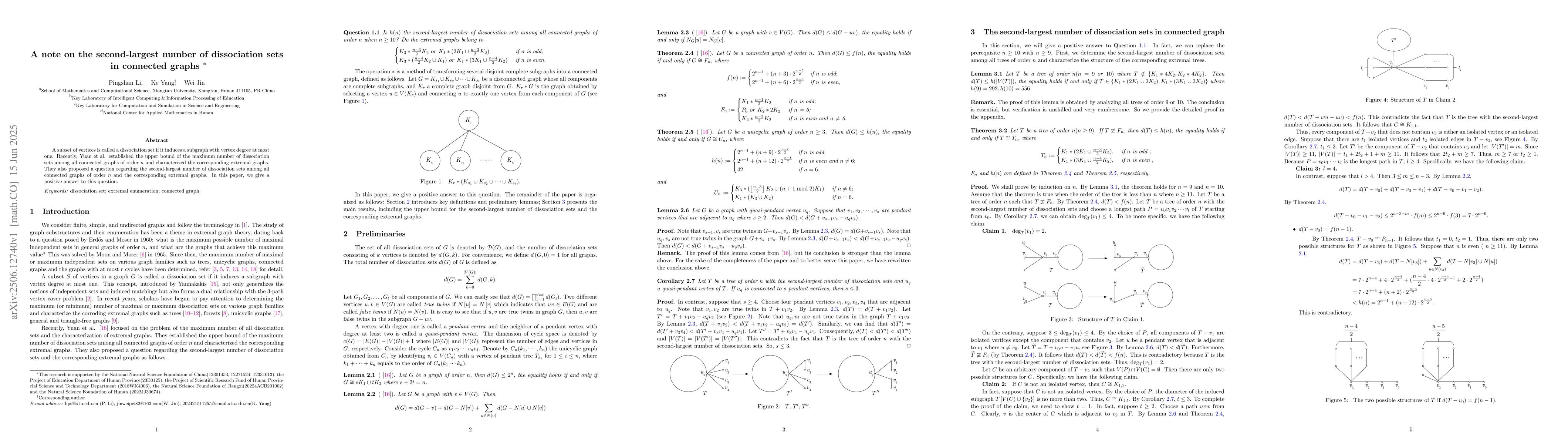A subset of vertices is called a dissociation set if it induces a subgraph with vertex degree at most one. Recently, Yuan et al. established the upper bound of the maximum number of dissociation sets among all connected graphs of order n and characterized the corresponding extremal graphs.They also proposed a question regarding the second-largest number of dissociation sets among all connected graphs of order n and the corresponding extremal graphs. In this paper, we give a positive answer to this question.