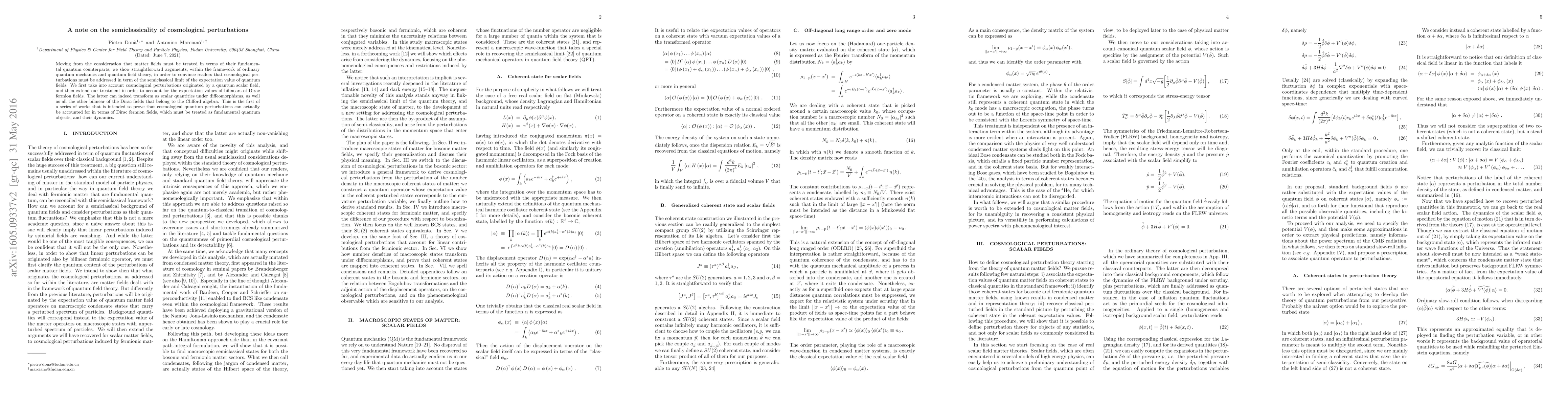 This paper argues that cosmological perturbations should be analyzed using the semiclassical limit of quantum field theory, focusing on the expectation values of quantum fields. It demonstrates this approach first for scalar fields and then extends it to Dirac fermion fields, emphasizing their role in describing quantum perturbations in cosmology.