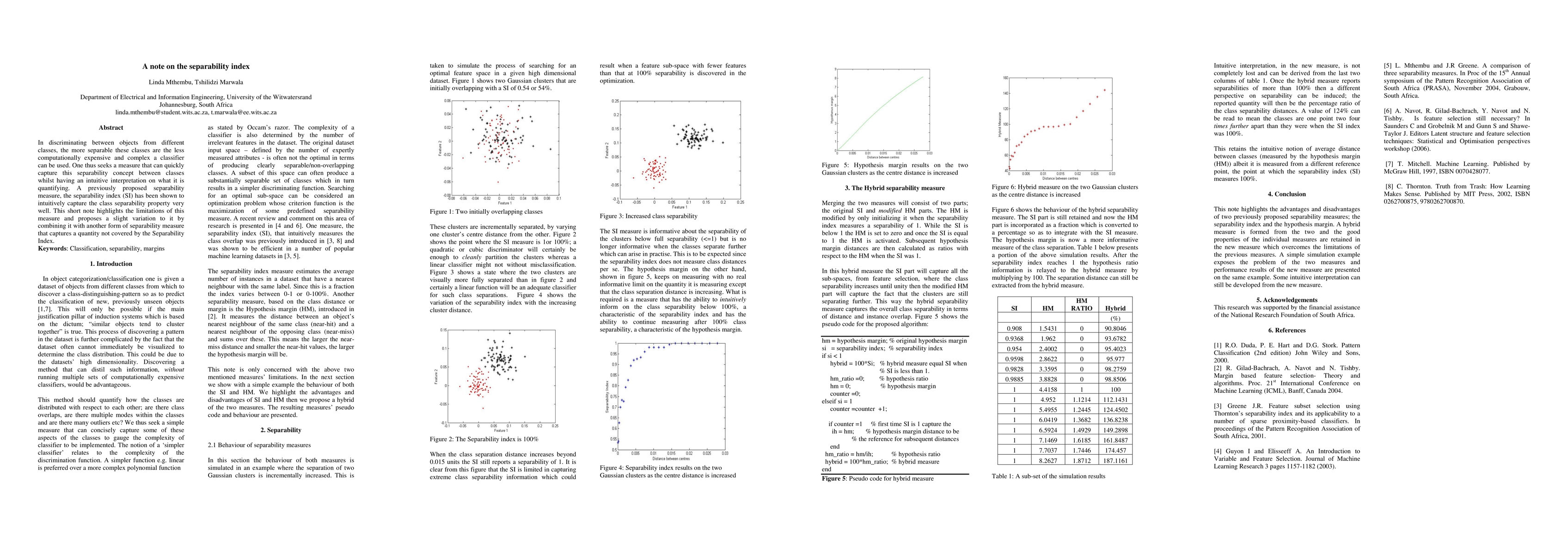 A novel hybrid separability measure was proposed that combines the strengths of the separability index and hypothesis margin.