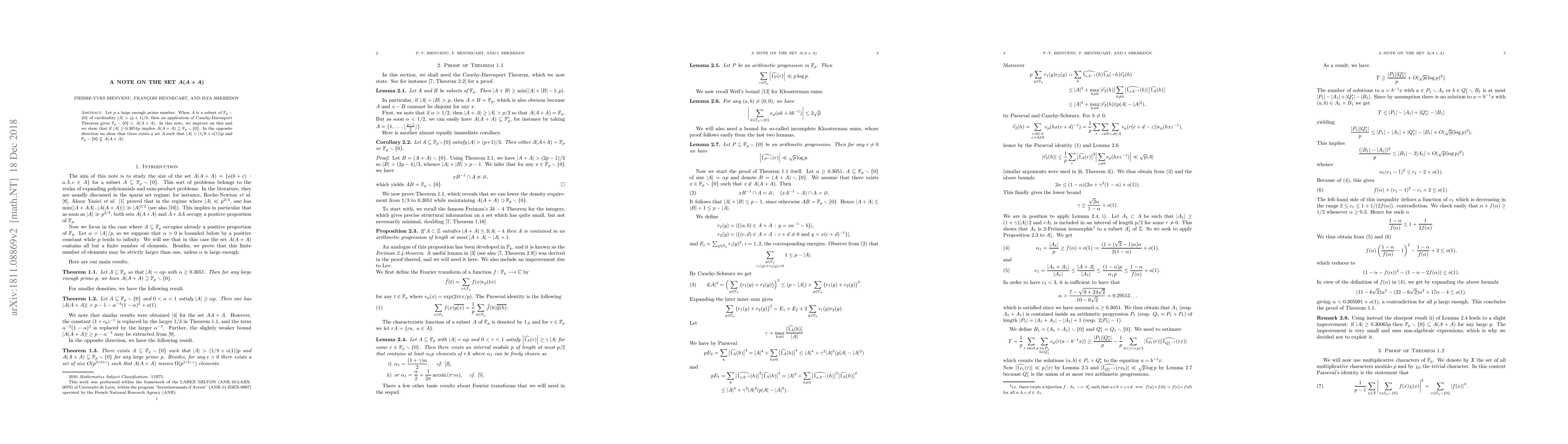 Let $p$ a large enough prime number. When $A$ is a subset of $\mathbb{F}_p\smallsetminus\{0\}$ of cardinality $|A|> (p+1)/3$, then an application of Cauchy-Davenport Theorem gives $\mathbb{F}_p\smallsetminus\{0\}\subset A(A+A)$. In this note, we improve on this and we show that if $|A|\ge 0.3051 p$ implies $A(A+A)\supseteq\mathbb{F}_p\smallsetminus\{0\}$. In the opposite direction we show that there exists a set $A$ such that $|A| > (1/8+o(1))p$ and $\mathbb{F}_p\smallsetminus\{0\}\not\subseteq A(A+A)$.