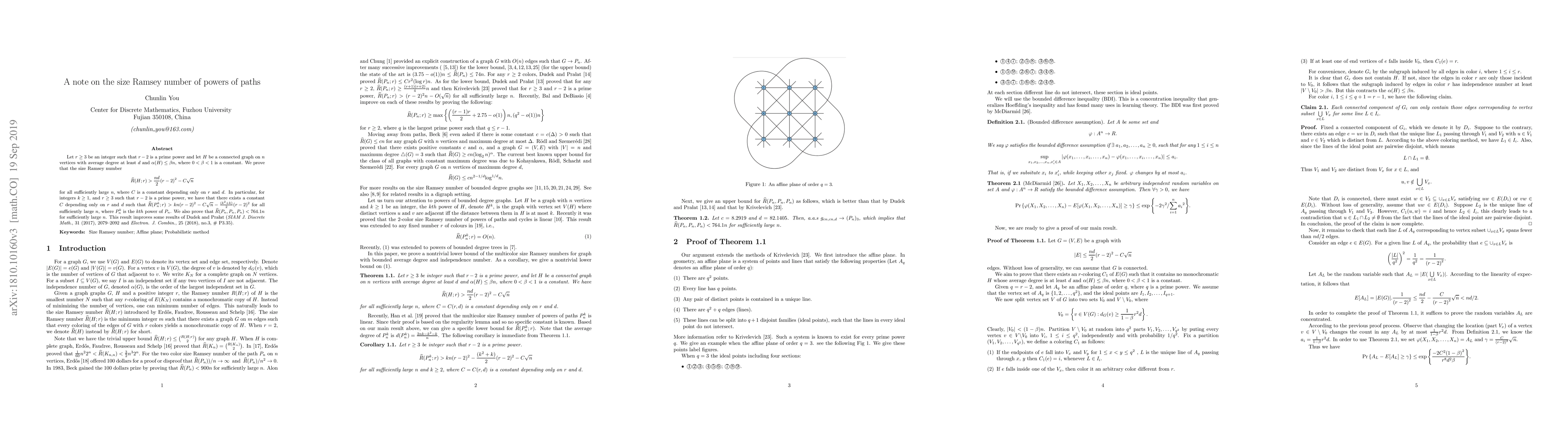 Let $r\geq3$ be an integer such that $r-2$ is a prime power and let $H$ be a connected graph on $n$ vertices with average degree at least $d$ and $\alpha(H)\leq\beta n$, where $0<\beta<1$ is a constant. We prove that the size Ramsey number \[ \hat{R}({H};r) > \frac{{nd}}{2}{(r - 2)^2} - C\sqrt n \] for all sufficiently large $n$, where $C$ is a constant depending only on $r$ and $d$. In particular, for integers $k\ge1$, and $r\ge3$ such that $r-2$ is a prime power, we have that there exists a constant $C$ depending only on $r$ and $d$ such that $\hat{R}(P_{n}^{k}; r)> kn{(r - 2)^2}-C\sqrt n -\frac{{({k^2} + k)}}{2}{(r - 2)^2}$ for all sufficiently large $n$, where $P_{n}^{k}$ is the $kth$ power of $P_n$. We also prove that $\hat{R}(P_n,P_n,P_n)<764.1n$ for sufficiently large $n$. This result improves some results of Dudek and Pra{\l}at (\emph{SIAM J. Discrete Math.}, 31 (2017), 2079--2092 and \emph{Electron. J. Combin.}, 25 (2018), no.3, # P3.35).