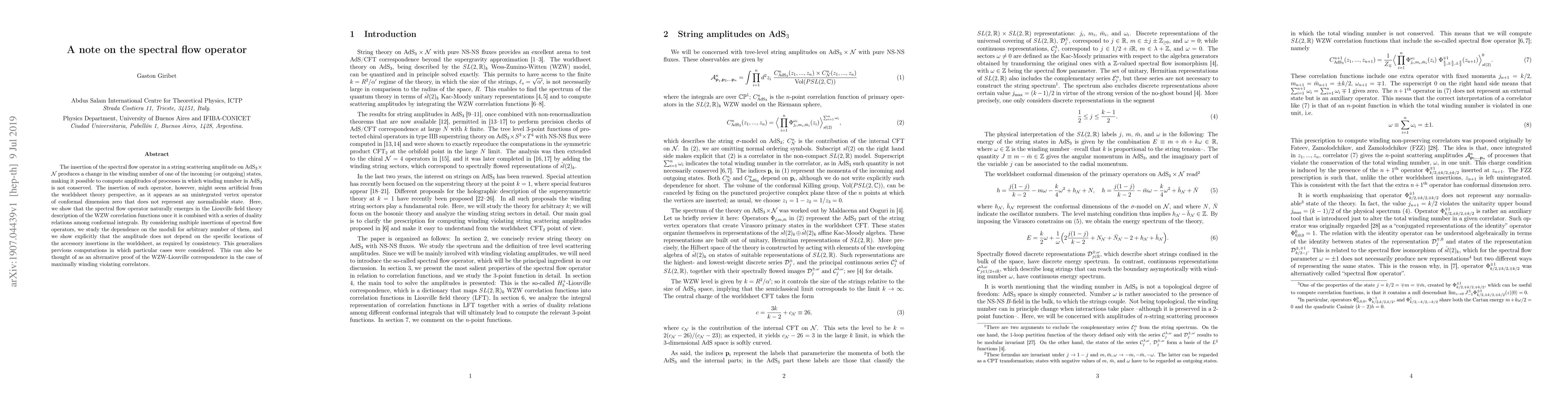 The spectral flow operator modifies the winding number in string scattering amplitudes on AdS$_3\times \mathcal{N}$, enabling computations for processes where winding number is not conserved. It emerges naturally in Liouville field theory through duality relations, generalizing previous results and providing an alternative proof of the WZW-Liouville correspondence.