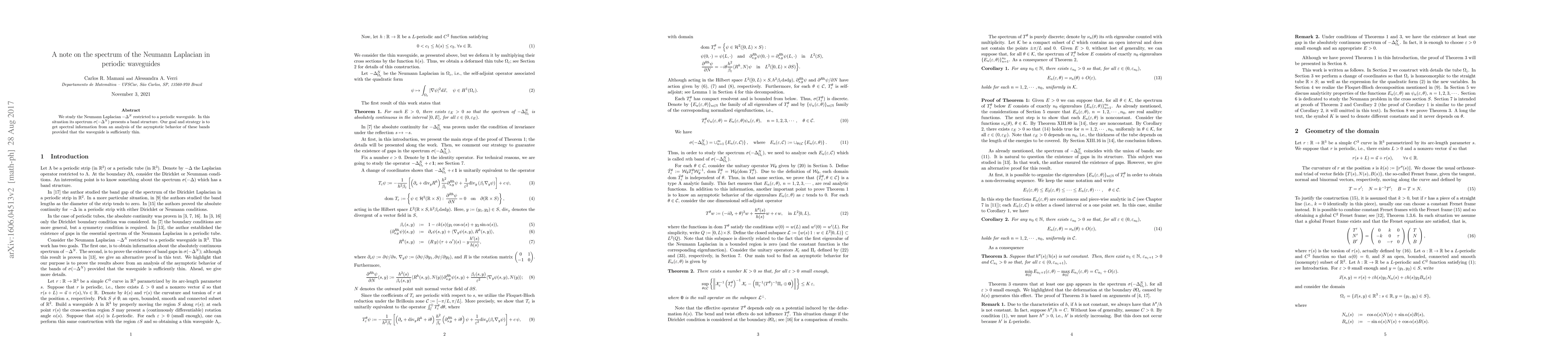 This paper investigates the spectrum of the Neumann Laplacian in periodic waveguides, focusing on the band structure of its spectrum. The authors aim to derive spectral information by analyzing the asymptotic behavior of these bands when the waveguide is sufficiently thin.
