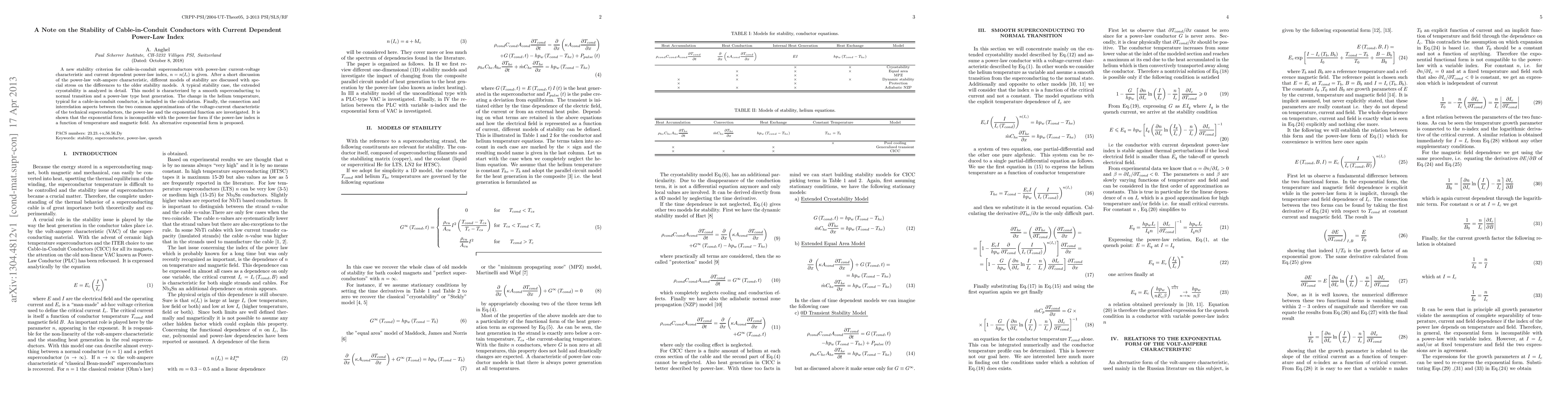This paper presents a new stability criterion for cable-in-conduit superconductors with a current-dependent power-law index, analyzing extended cryostability and comparing it to older models. It concludes that the exponential form of voltage-current characteristics is incompatible with a temperature and magnetic field-dependent power-law index, proposing an alternative exponential form.