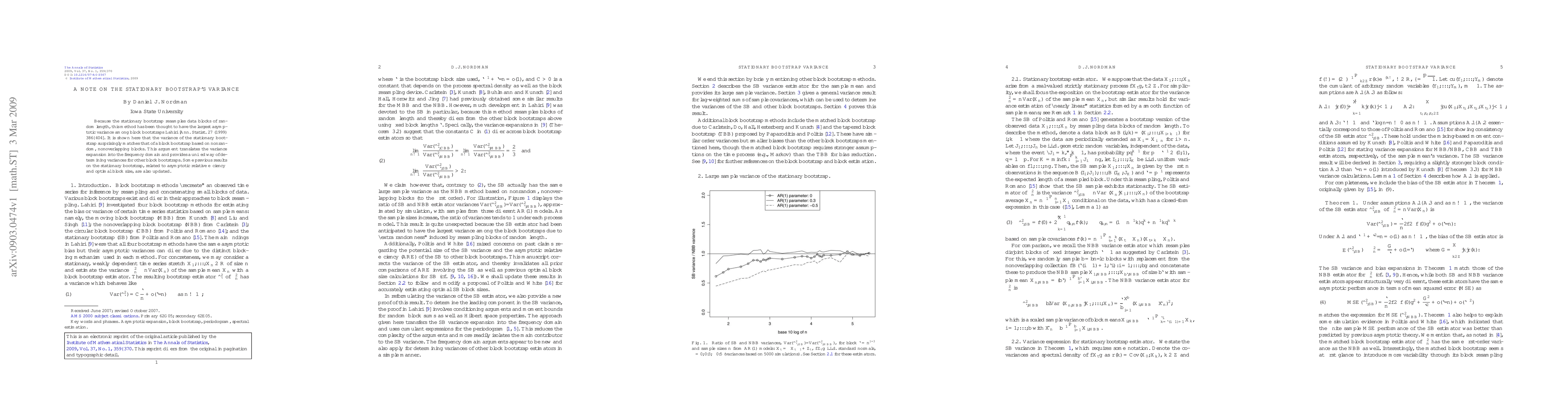 Because the stationary bootstrap resamples data blocks of random length, this method has been thought to have the largest asymptotic variance among block bootstraps Lahiri [Ann. Statist. 27 (1999) 386--404]. It is shown here that the variance of the stationary bootstrap surprisingly matches that of a block bootstrap based on nonrandom, nonoverlapping blocks. This argument translates the variance expansion into the frequency domain and provides a unified way of determining variances for other block bootstraps. Some previous results on the stationary bootstrap, related to asymptotic relative efficiency and optimal block size, are also updated.