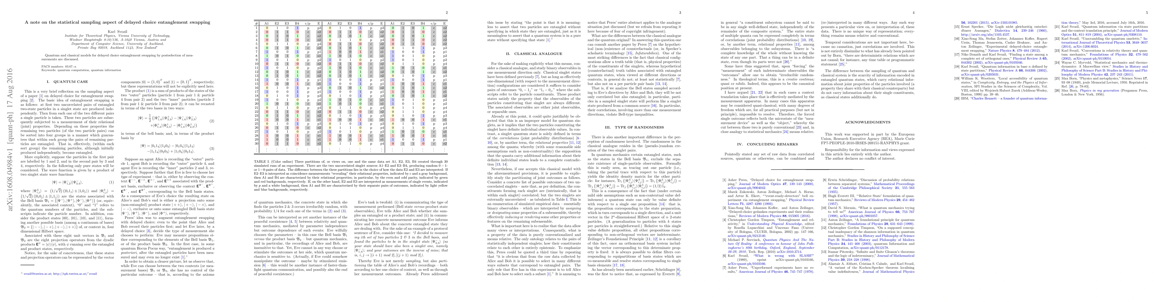 This paper examines the statistical sampling implications of delayed choice entanglement swapping, focusing on both quantum and classical models that utilize postselection of measurements. It highlights the differences and similarities in how these models handle entanglement swapping.