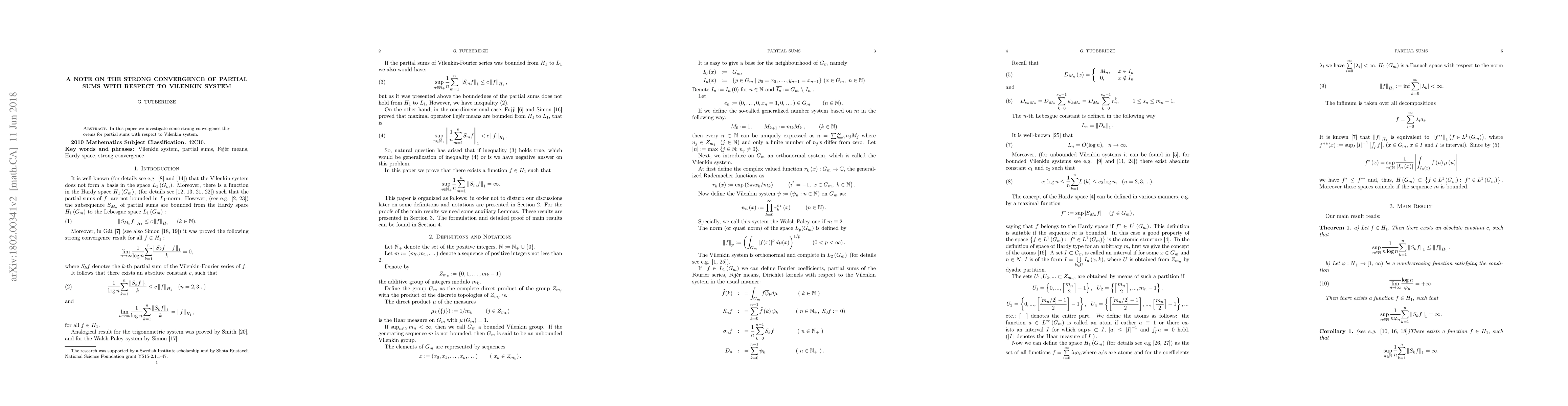 This paper investigates strong convergence of partial sums with respect to the Vilenkin system, a mathematical framework used for representing musical notes. It explores key findings on the convergence properties of these sums in relation to this system.