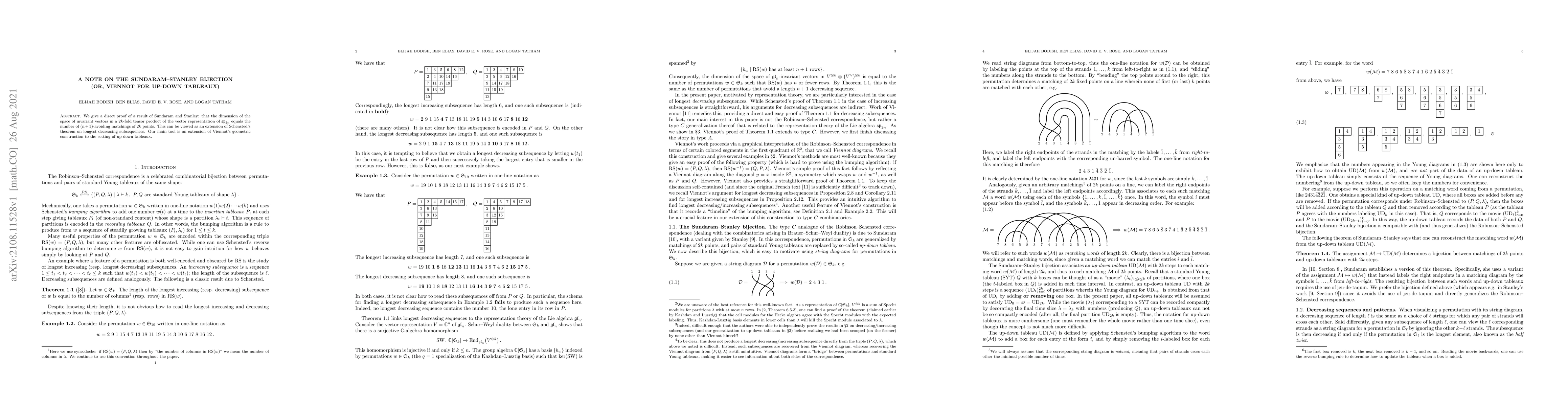 We give a direct proof of a result of Sundaram and Stanley: that the dimension of the space of invariant vectors in a $2k$-fold tensor product of the vector representation of $\mathfrak{sp}_{2n}$ equals the number of $(n+1)$-avoiding matchings of $2k$ points. This can be viewed as an extension of Schensted's theorem on longest decreasing subsequences. Our main tool is an extension of Viennot's geometric construction to the setting of up-down tableaux.