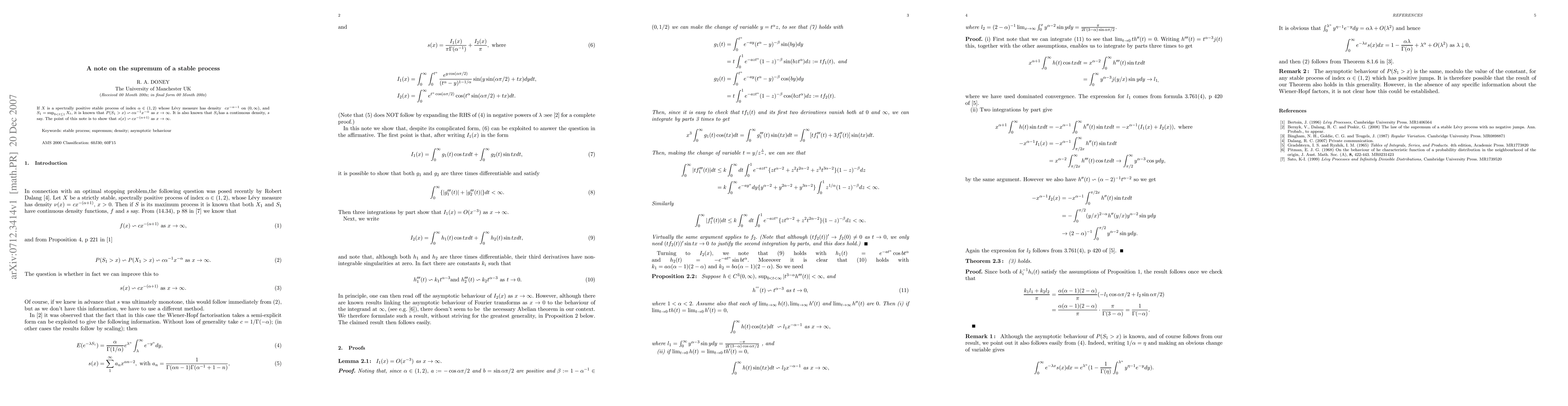 If $X$ is a spectrally positive stable process of index $\alpha\in(1,2)$