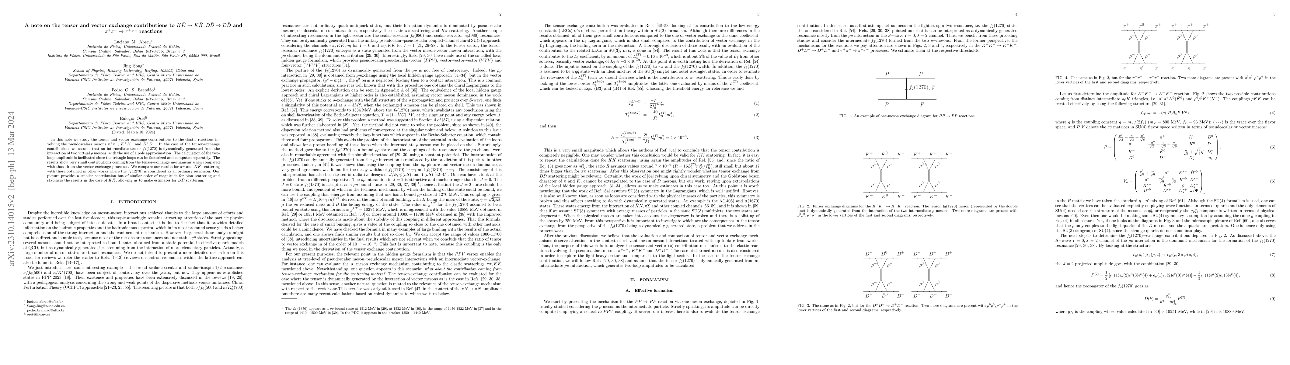 This research examines tensor and vector exchange contributions in elastic pseudoscalar meson reactions, specifically $\pi^+ \pi^-$, $K^{+}K^{-}$, and $D^{+}D^{-}$. It finds that tensor-exchange contributions, involving an intermediate $f_2(1270)$ meson, yield smaller effects compared to vector-exchange processes, providing a more stable framework for estimating $D\bar{D}$ scattering.