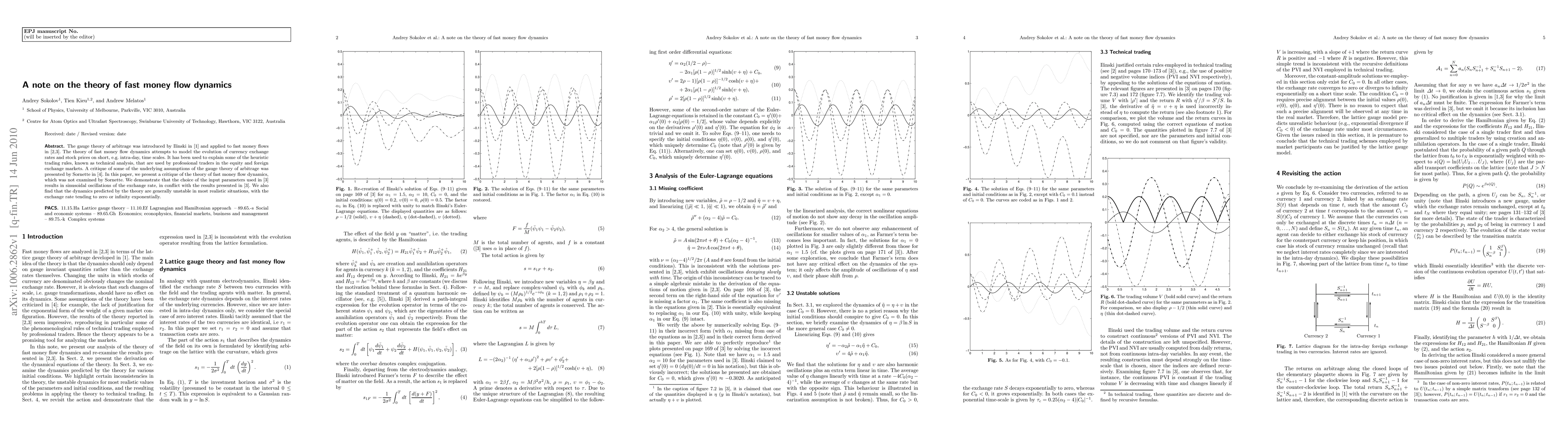 The gauge theory of arbitrage was introduced by Ilinski in [arXiv:hep-th/9710148] and applied to fast money flows in [arXiv:cond-mat/9902044]. The theory of fast money flow dynamics attempts to model the evolution of currency exchange rates and stock prices on short, e.g.\ intra-day, time scales. It has been used to explain some of the heuristic trading rules, known as technical analysis, that are used by professional traders in the equity and foreign exchange markets. A critique of some of the underlying assumptions of the gauge theory of arbitrage was presented by Sornette in [arXiv:cond-mat/9804045]. In this paper, we present a critique of the theory of fast money flow dynamics, which was not examined by Sornette. We demonstrate that the choice of the input parameters used in [arXiv:cond-mat/9902044] results in sinusoidal oscillations of the exchange rate, in conflict with the results presented in [arXiv:cond-mat/9902044]. We also find that the dynamics predicted by the theory are generally unstable in most realistic situations, with the exchange rate tending to zero or infinity exponentially.