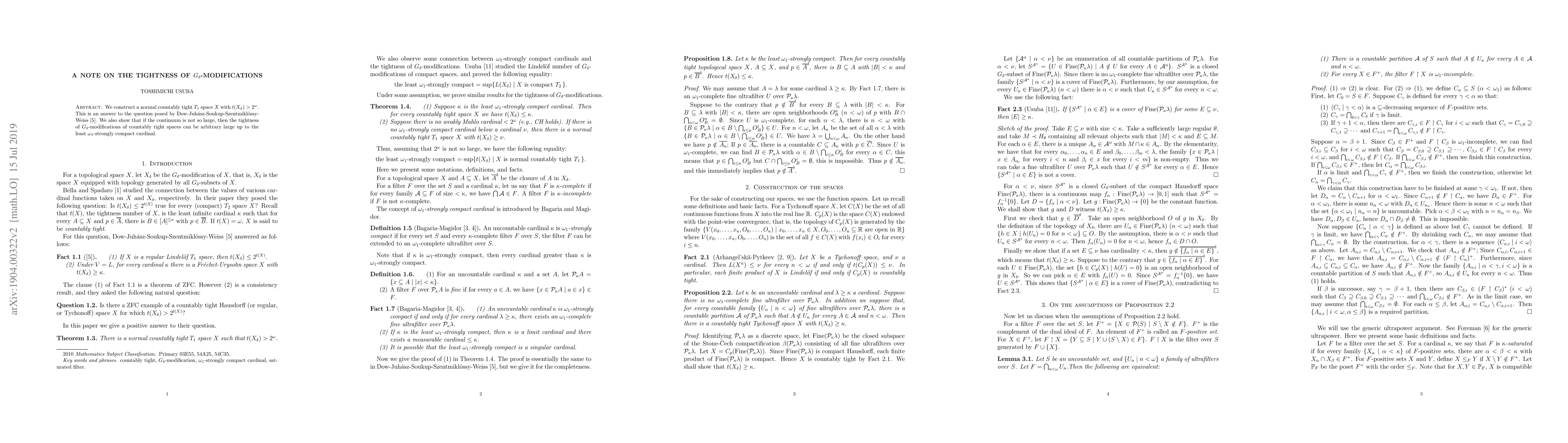 Summary: This paper constructs a normal countably tight $T_1$ space $X$ with a high tightness for $G_\delta$-modifications, addressing a question posed by Dow et al. It also demonstrates that the tightness of $G_\delta$-modifications can vary significantly depending on the size of the continuum, up to the least $\omega_1$-strongly compact cardinal.