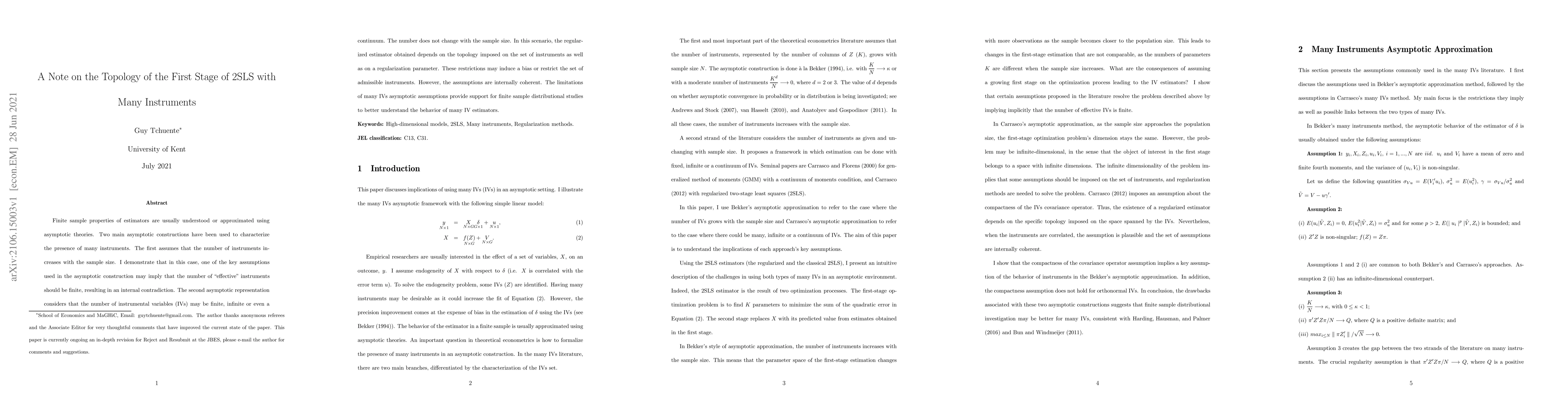 The finite sample properties of estimators are usually understood or approximated using asymptotic theories. Two main asymptotic constructions have been used to characterize the presence of many instruments. The first assumes that the number of instruments increases with the sample size. I demonstrate that in this case, one of the key assumptions used in the asymptotic construction may imply that the number of ``effective" instruments should be finite, resulting in an internal contradiction. The second asymptotic representation considers that the number of instrumental variables (IVs) may be finite, infinite, or even a continuum. The number does not change with the sample size. In this scenario, the regularized estimator obtained depends on the topology imposed on the set of instruments as well as on a regularization parameter. These restrictions may induce a bias or restrict the set of admissible instruments. However, the assumptions are internally coherent. The limitations of many IVs asymptotic assumptions provide support for finite sample distributional studies to better understand the behavior of many IV estimators.