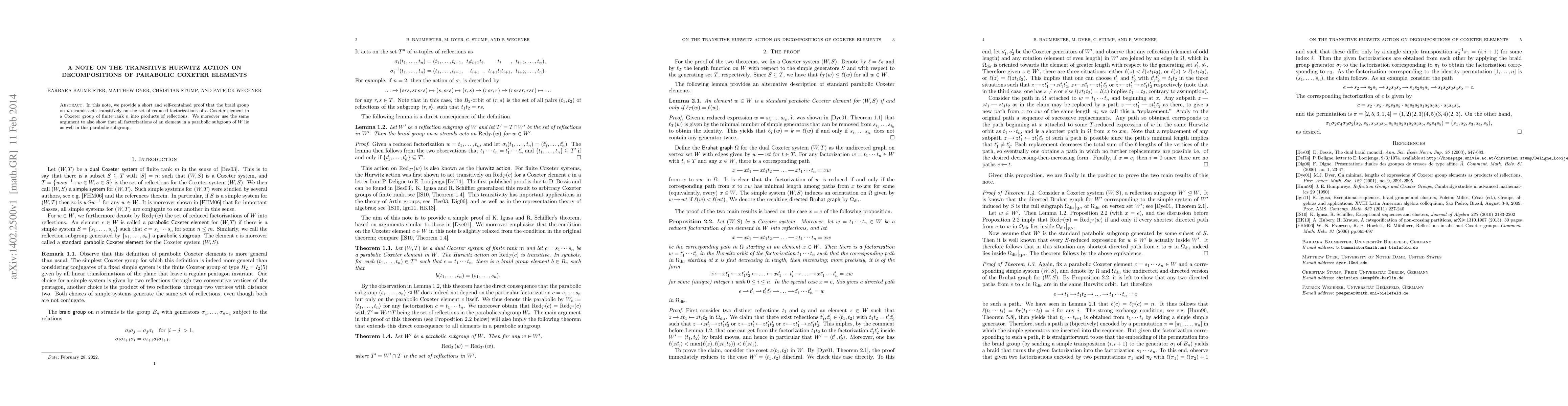 In this note, we provide a short and self-contained proof that the braid group on n strands acts transitively on the set of reduced factorizations of a Coxeter element in a Coxeter group of finite rank n into products of reflections. We moreover use the same argument to also show that all factorizations of an element in a parabolic subgroup of W lie as well in this parabolic subgroup.