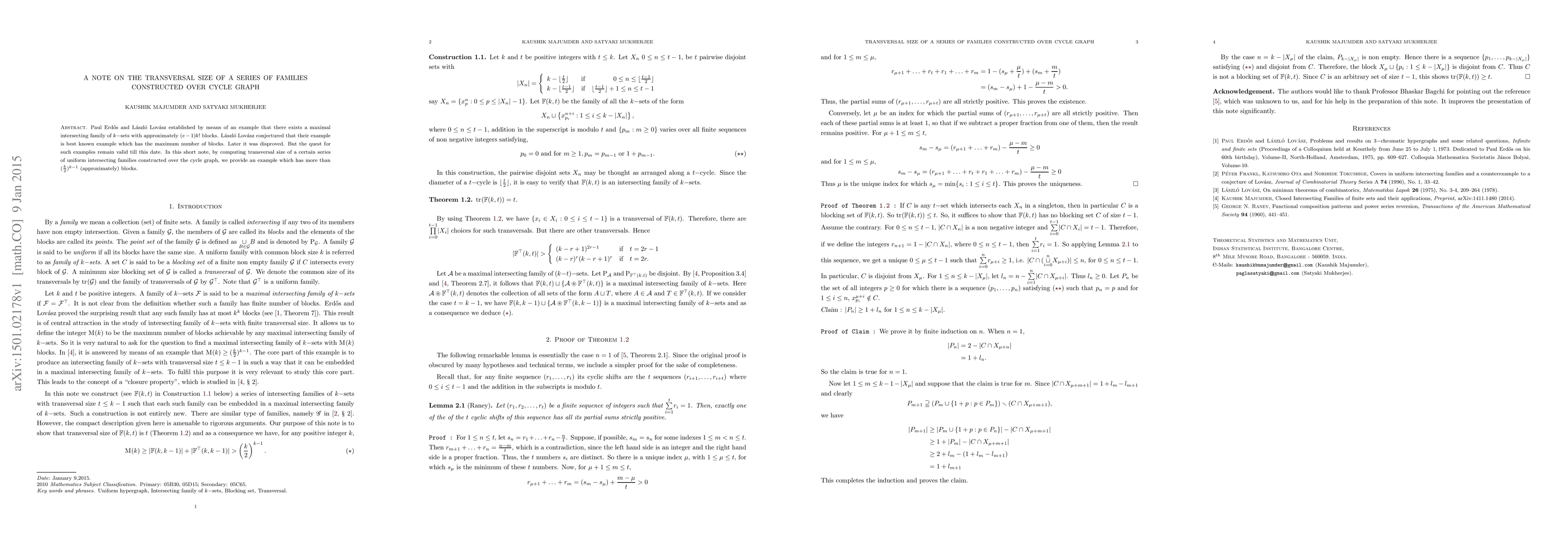 Paul Erd\H{o}s and L\'{a}szl\'{o} Lov\'{a}sz established by means of an example that there exists a maximal intersecting family of $k-$sets with approximately $(e-1)k!$ blocks. L\'{a}szl\'{o} Lov\'{a}sz conjectured that their example is best known example which has the maximum number of blocks. Later it was disproved. But the quest for such examples remain valid till this date. In this short note, by computing transversal size of a certain series of uniform intersecting families constructed over the cycle graph, we provide an example which has more than $(\frac{k}{2})^{k-1}$ (approximately) blocks.
