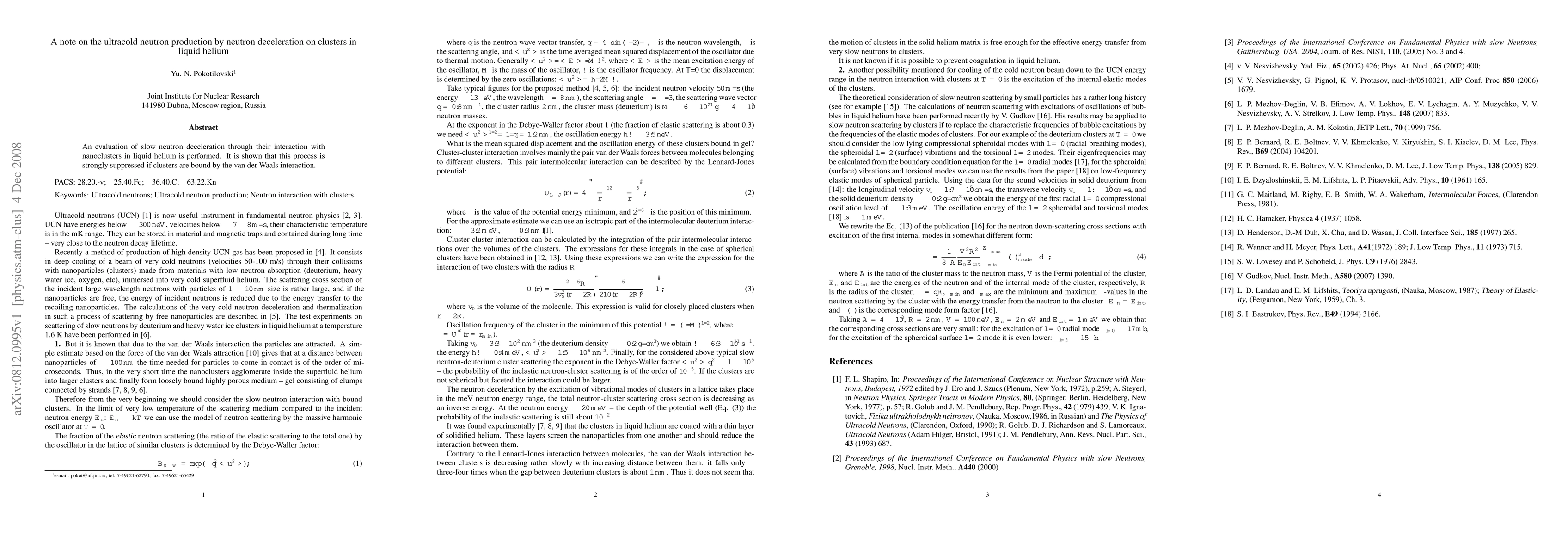 An evaluation of slow neutrons deceleration through their interaction with nanoclusters in liquid helium is performed. It is shown that process is strongly suppresed if the clusters are bound by the van der Waals interaction.