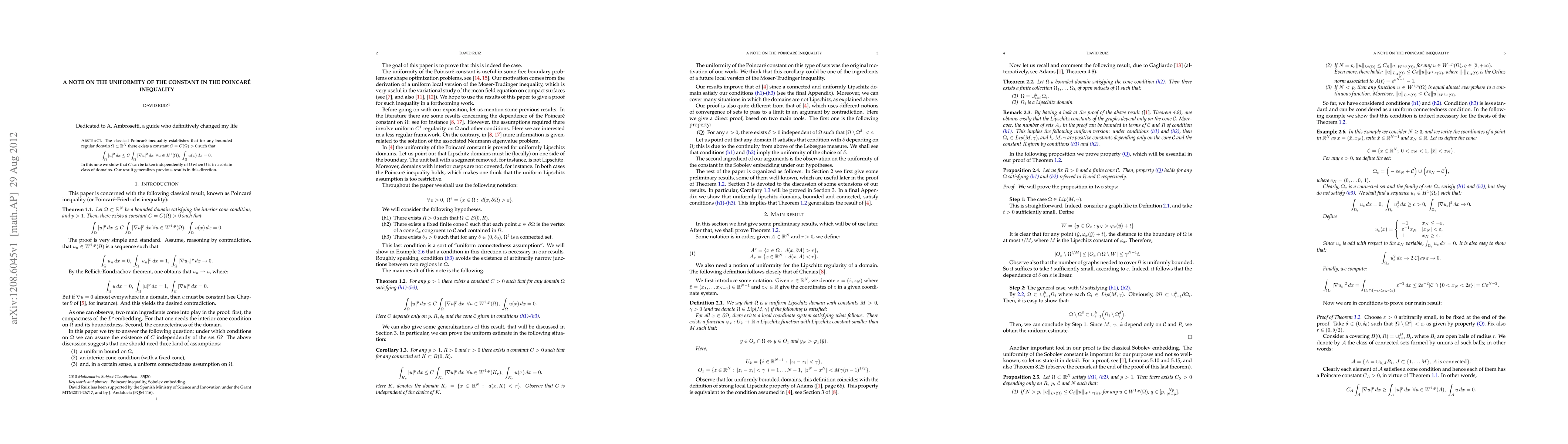 The paper shows that a constant in the Poincaré inequality can be independent of the domain for certain types of domains, generalizing previous results.