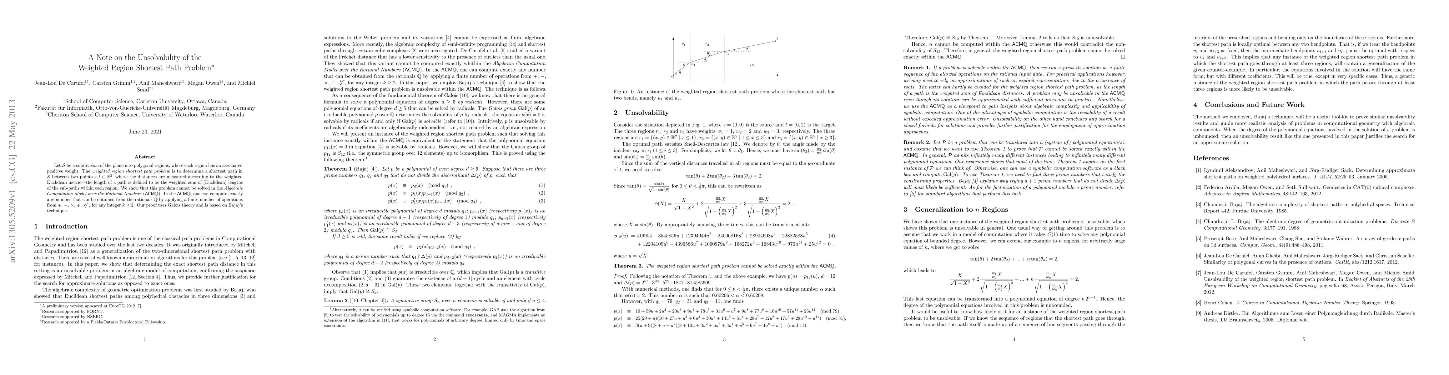 This paper demonstrates the unsolvability of the weighted region shortest path problem in the Algebraic Computation Model over the Rational Numbers (ACMQ) using Galois theory and Bajaj's technique. The problem involves finding the shortest path between two points in a subdivided plane, where each region has a positive weight affecting the path's length.