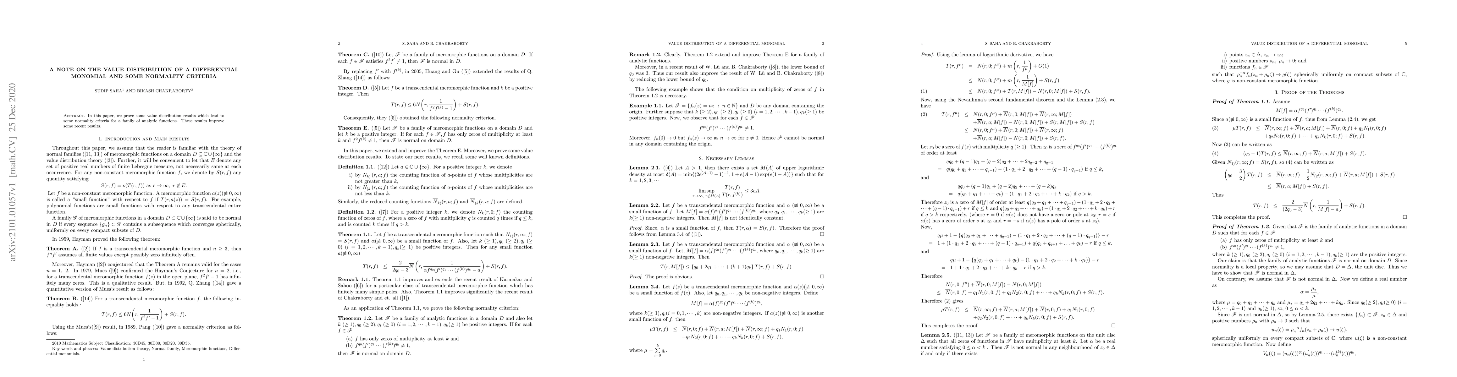 Summary: This paper establishes new value distribution results for a differential monomial, which are used to derive improved normality criteria for a specific class of analytic functions. These findings enhance the understanding of the behavior of these functions.