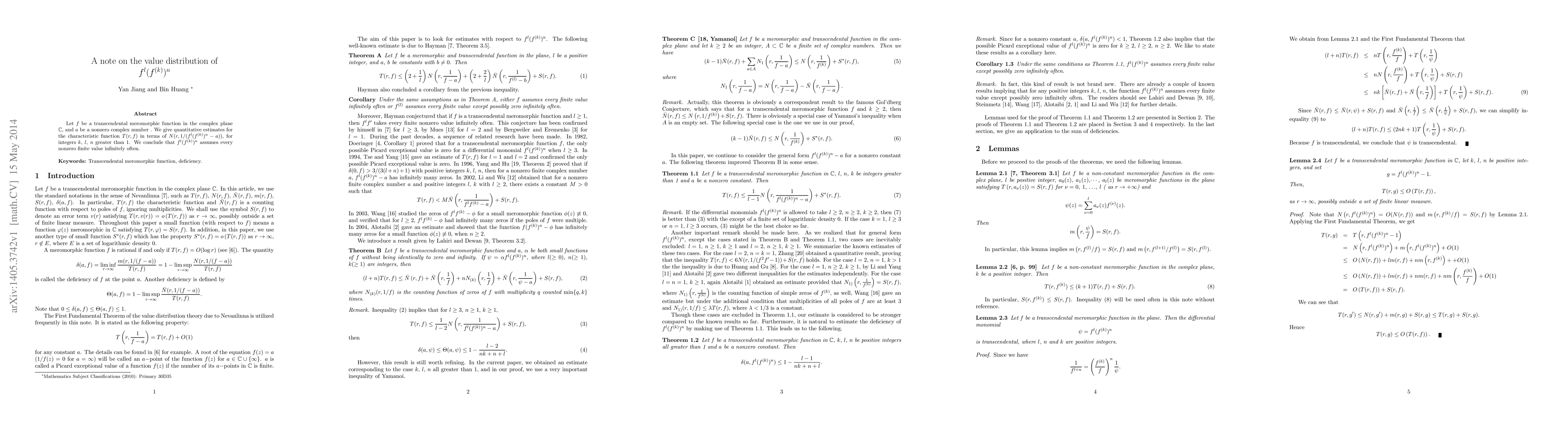 Let $f$ be a transcendental meromorphic function in the complex plane $\mathbb{C}$, and $a$ be a nonzero complex number . We give quantitative estimates for the characteristic function $T(r,f)$ in terms of $N(r,1/(f^l(f^{(k)})^n-a))$, for integers $k$, $l$, $n$ greater than 1. We conclude that $f^l(f^{(k)})^n$ assumes every nonzero finite value infinitely often.