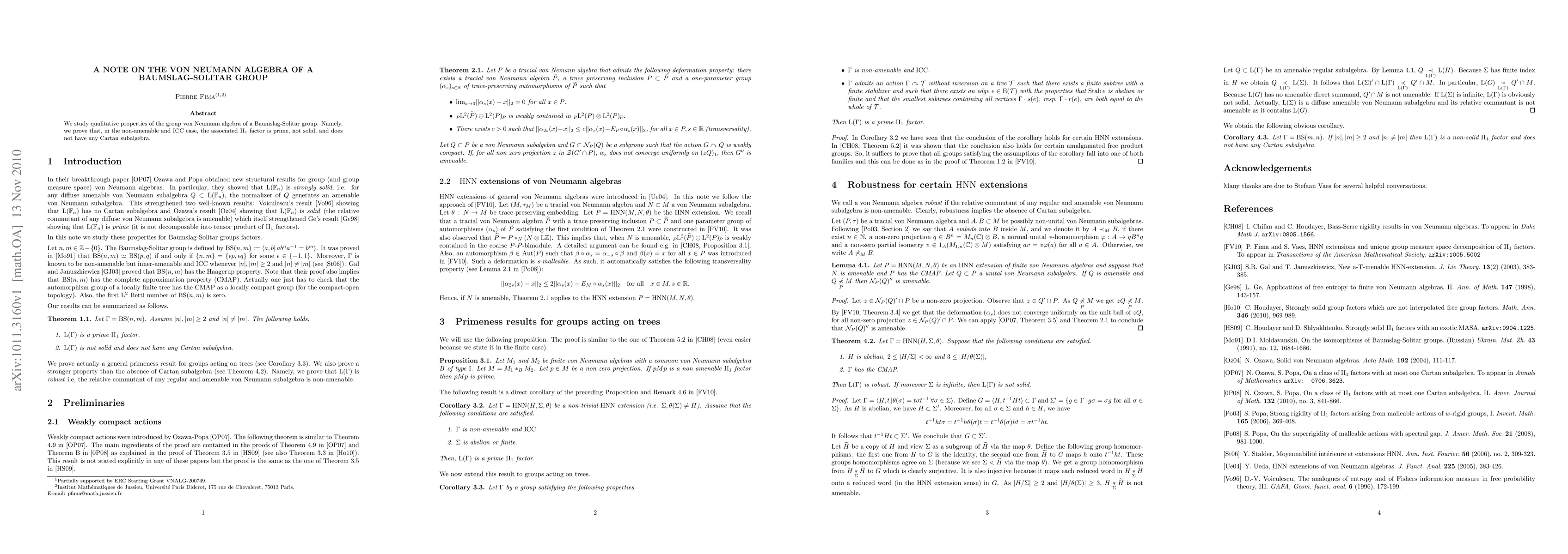 Researchers studied the von Neumann algebra of Baumslag-Solitar groups, finding that in non-amenable cases, it has certain unique properties including being prime and not solid.