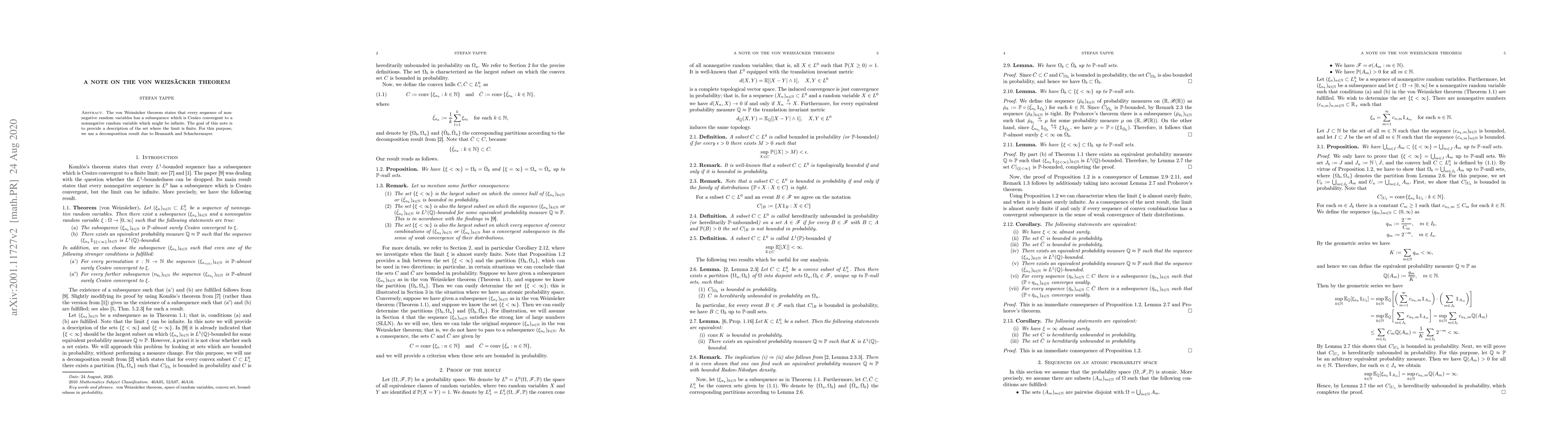 The von Weizs\"{a}cker theorem states that every sequence of nonnegative random variables has a subsequence which is Ces\`{a}ro convergent to a nonnegative random variable which might be infinite. The goal of this note is to provide a description of the set where the limit is finite. For this purpose, we use a decomposition result due to Brannath and Schachermayer.