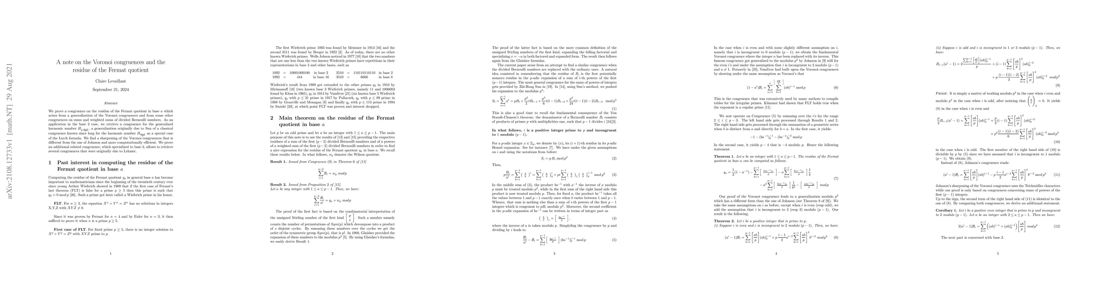 Given an odd prime p, we prove a congruence on the p-residue of the Fermat quotient q_p(a) in base a with 0