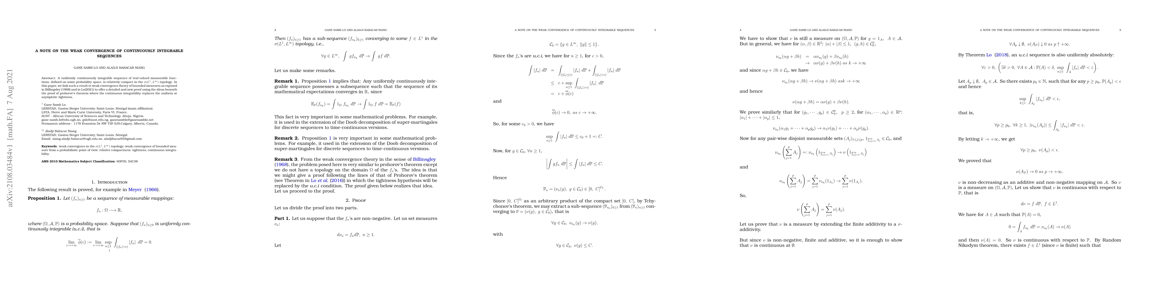 A uniformly continuously integrable sequence of real-valued measurable functions, defined on some probability space, is relatively compact in the $\sigma(L^1,L^\infty)$ topology. In this paper, we link such a result to weak convergence theory of bounded measures as exposed in Billingsley (1968) and in Lo(2021) to offer a detailed and new proof using the ideas beneath the proof of prohorov's theorem where the continuous integrability replaces the uniform or asymptotic tightness.