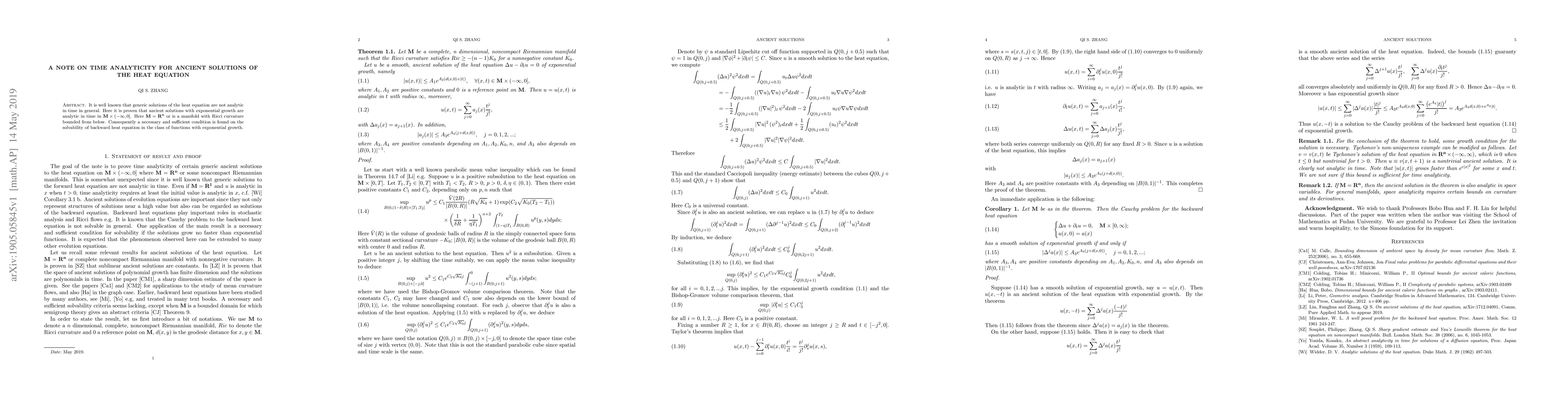 It is well known that generic solutions of the heat equation are not analytic in time in general. Here it is proven that ancient solutions with exponential growth are analytic in time in ${\M} \times (-\infty, 0]$. Here $\M=\R^n$ or is a manifold with Ricci curvature bounded from below. Consequently a necessary and sufficient condition is found on the solvability of backward heat equation in the class of functions with exponential growth.