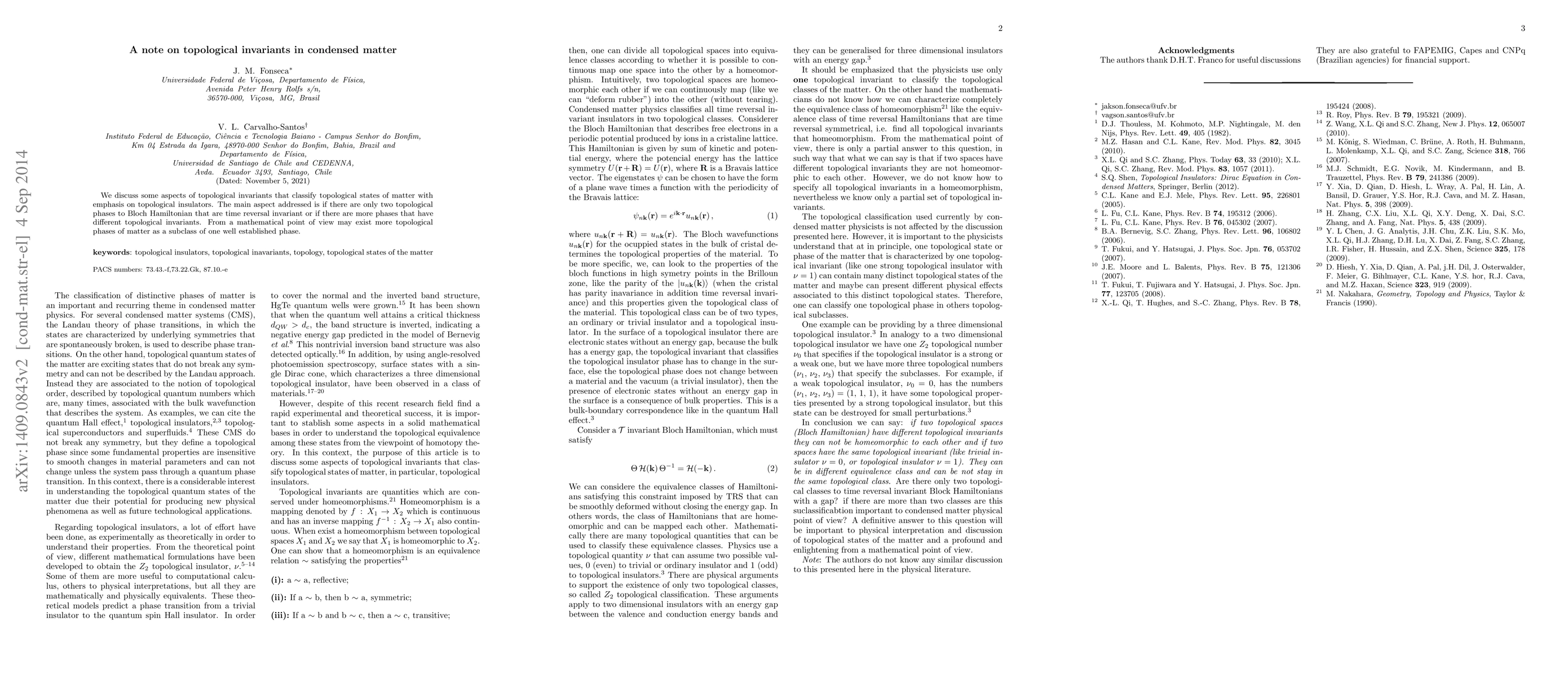 Researchers explore topological invariants in condensed matter physics, finding potential for more phases beyond established ones, particularly in time reversal invariant systems like topological insulators.