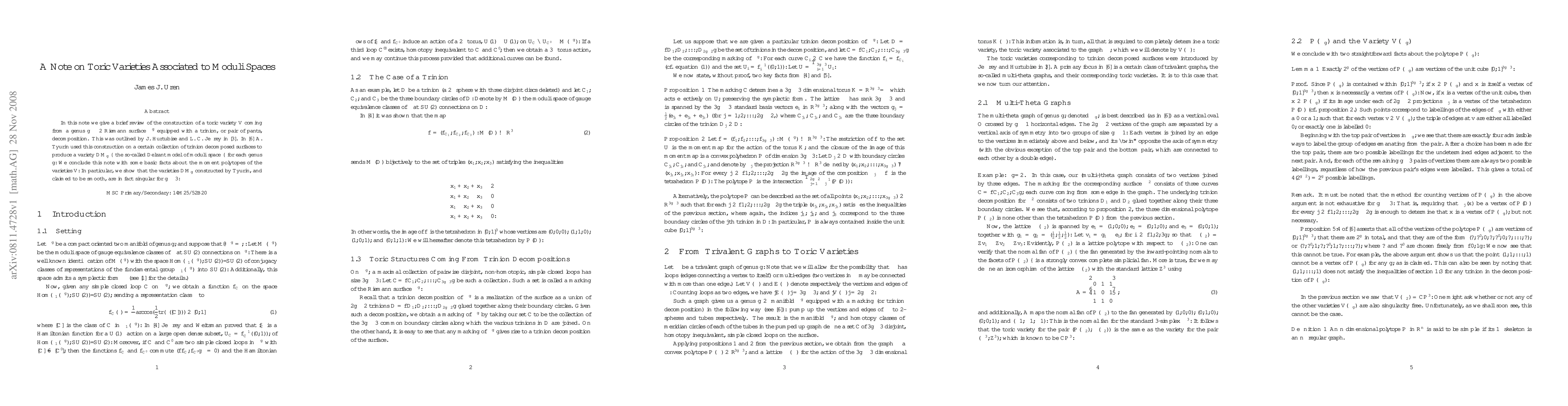 Researchers review the construction of toric varieties from genus $g geq 2$ Riemann surfaces with trinion decomposition, revealing a mistake in claimed smoothness of certain moduli spaces for $g geq 3$.