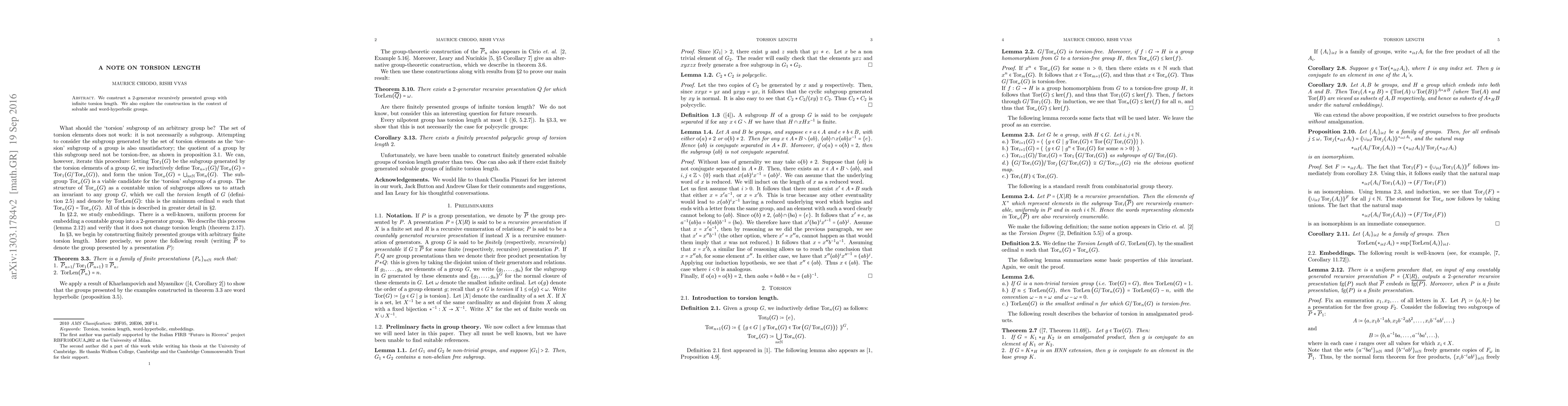 We construct a 2-generator recursively presented group with infinite torsion length. We also explore the construction in the context of solvable and word-hyperbolic groups.
